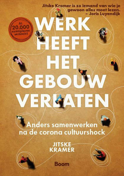 Jitske Kramer schreef Werk heeft het gebouw verlaten tijdens de tweede gedeeltelijke Lock down in oktober 2020. Over hoe corona ons in een collectieve wereldwijde cultuurshock stortte en wat de impact hiervan is op ons werkende leven. Werkritmes liggen al maanden volledig overhoop, we worden geconfronteerd met onzekerheid, crisisbeslissingen en de noodzaak tot aanpassen en veranderen. Het thuiswerken kreeg een vlucht, wat vraagt om meer dan houtje-touwtje-online-kantoortje spelen.
