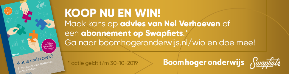 Om te vieren dat de bestseller Wat is onderzoek? van Nel Verhoeven bijna het 200.000ste exemplaar heeft verkocht, geven we mooie prijzen weg. We willen dit vieren met uw studenten! Want als zij nu een (nieuw) exemplaar van Wat is onderzoek? kopen, maken ze kans op persoonlijk advies van Nel Verhoeven bij hun onderzoeksproject. Bovendien verloten we enkele Swapfiets abonnementen!