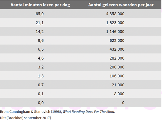 Tip: gebruik de tabel tijdens de gesprekken met jouw cursisten om het belang van lezen te benadrukken.