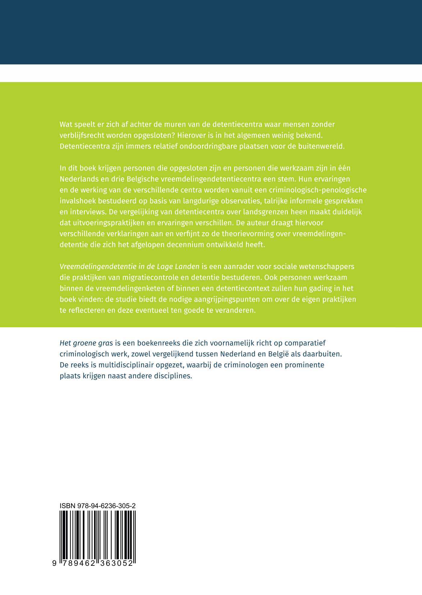 In dit boek krijgen personen die opgesloten zijn en personen die werkzaam zijn in één Nederlands en drie Belgische vreemdelingendetentiecentra een stem. Hun ervaringen en de werking van de verschillende centra worden vanuit een criminologisch-penologische invalshoek bestudeerd op basis van langdurige observaties, talrijke informele gesprekken en interviews. De vergelijking van detentiecentra over landsgrenzen heen maakt duidelijk dat uitvoeringspraktijken en ervaringen verschillen. De auteur draagt hiervoor verschillende verklaringen aan en verfijnt zo de theorievorming over vreemdelingendetentie die zich het afgelopen decennium ontwikkeld heeft.