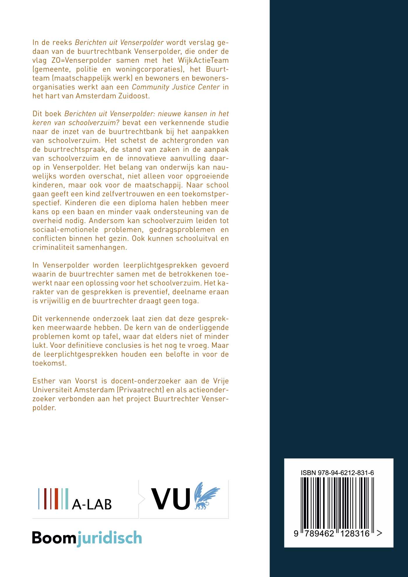 Dit boek Berichten uit Venserpolder: nieuwe kansen in het keren van schoolverzuim? bevat een verkennende studie naar de inzet van de buurtrechtbank bij het aanpakken van schoolverzuim. Het schetst de achtergronden van de buurtrechtspraak, de stand van zaken in de aanpak van schoolverzuim en de innovatieve aanvulling daarop in Venserpolder. Het belang van onderwijs kan nauwelijks worden overschat, niet alleen voor opgroeiende kinderen, maar ook voor de maatschappij. Naar school gaan geeft een kind zelfvertrouwen en een toekomstperspectief. Kinderen die een diploma halen hebben meer kans op een baan en minder vaak ondersteuning van de overheid nodig. Andersom kan schoolverzuim leiden tot sociaalemotionele problemen, gedragsproblemen en conflicten binnen het gezin. Ook kunnen schooluitval en criminaliteit samenhangen.
