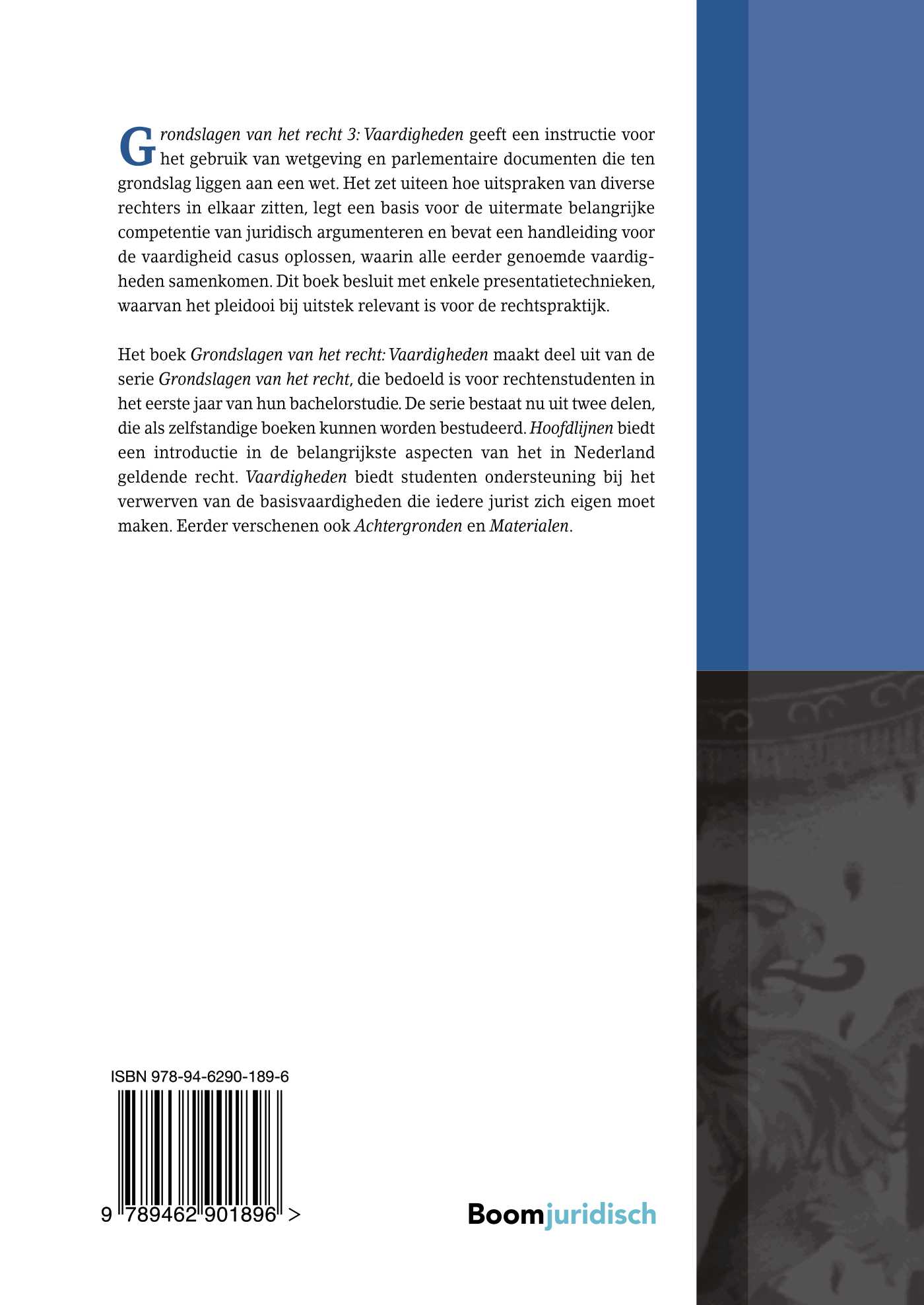 Het boek Grondslagen van het recht: Vaardigheden maakt deel uit van de serie Grondslagen van het recht, die bedoeld is voor rechtenstudenten in het eerste jaar van hun bachelorstudie. De serie bestaat nu uit twee delen, die als zelfstandige boeken kunnen worden bestudeerd. Hoofdlijnen biedt een introductie in de belangrijkste aspecten van het in Nederland geldende recht. Vaardigheden biedt studenten ondersteuning bij het verwerven van de basisvaardigheden die iedere jurist zich eigen moet maken. Eerder verschenen ook Achtergronden en Materialen.