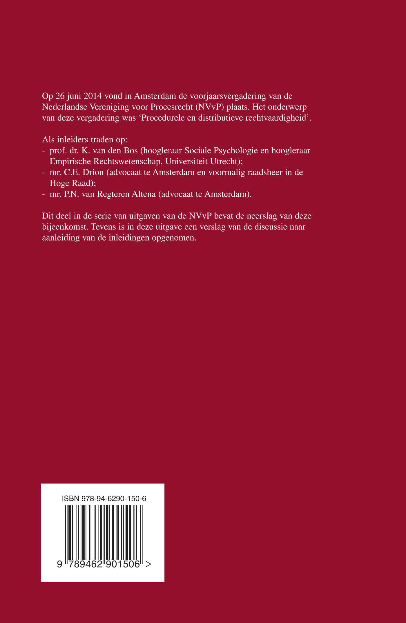 Op 26 juni 2014 vond in Amsterdam de voorjaarsvergadering van de Nederlandse Vereniging voor Procesrecht (NVvP) plaats. Het onderwerp van deze vergadering was ‘Procedurele en distributieve rechtvaardigheid’.