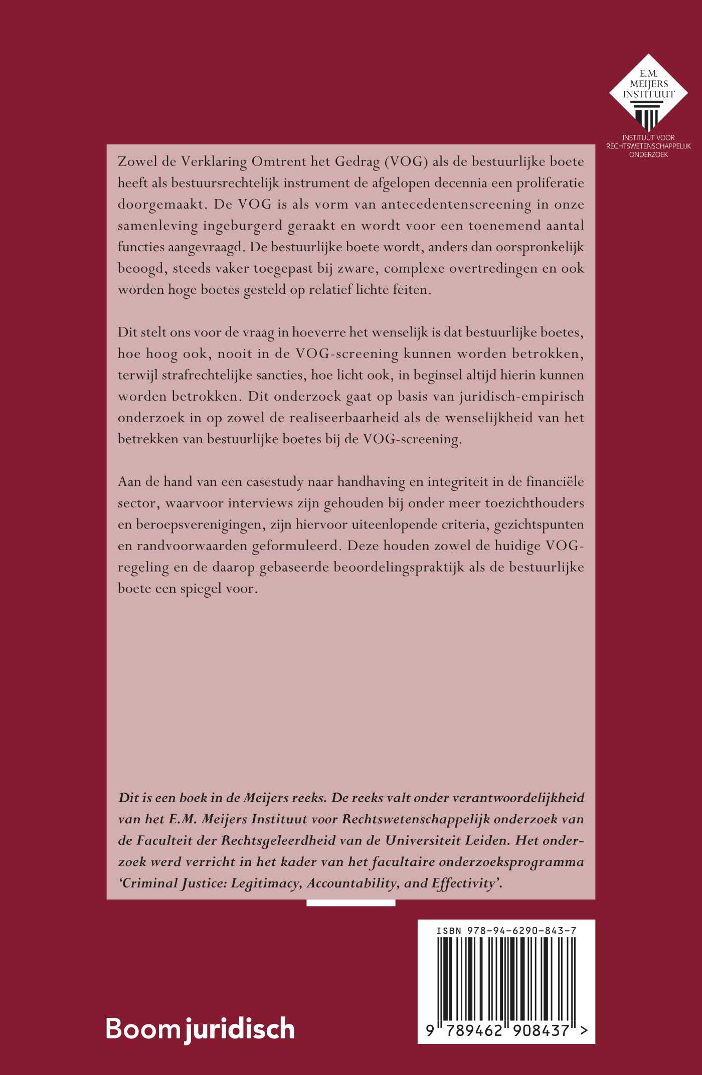 Dit stelt ons voor de vraag in hoeverre het wenselijk is dat bestuurlijke boetes, hoe hoog ook, nooit in de VOG-screening kunnen worden betrokken, terwijl strafrechtelijke sancties, hoe licht ook, in beginsel altijd hierin kunnen worden betrokken. Dit onderzoek gaat op basis van juridisch-empirisch onderzoek in op zowel de realiseerbaarheid als de wenselijkheid van het betrekken van bestuurlijke boetes bij de VOG-screening.