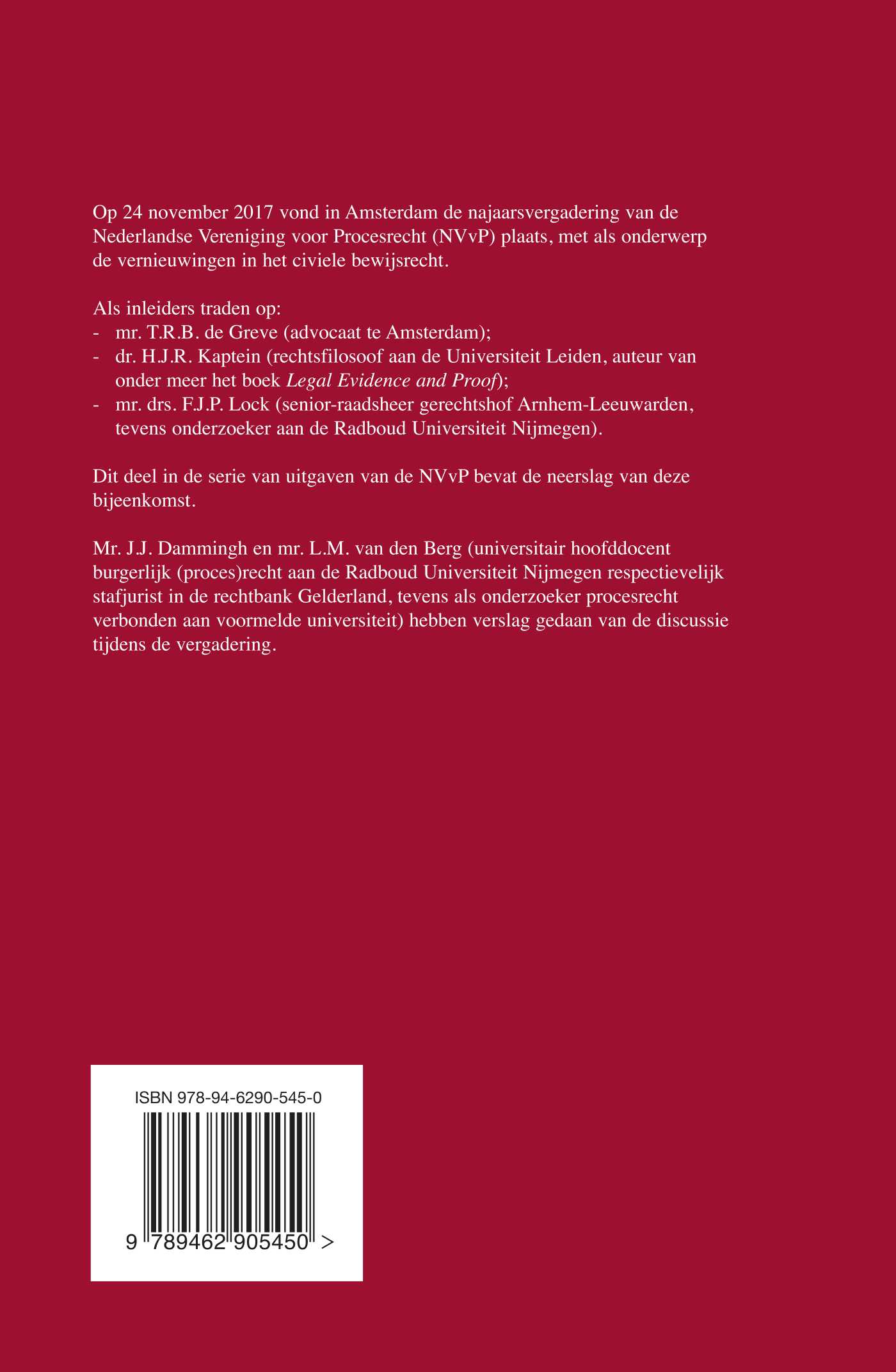 Op 24 november 2017 vond in Amsterdam de najaarsvergadering van de Nederlandse Vereniging voor Procesrecht (NVvP) plaats, met als onderwerp de vernieuwingen in het civiele bewijsrecht.