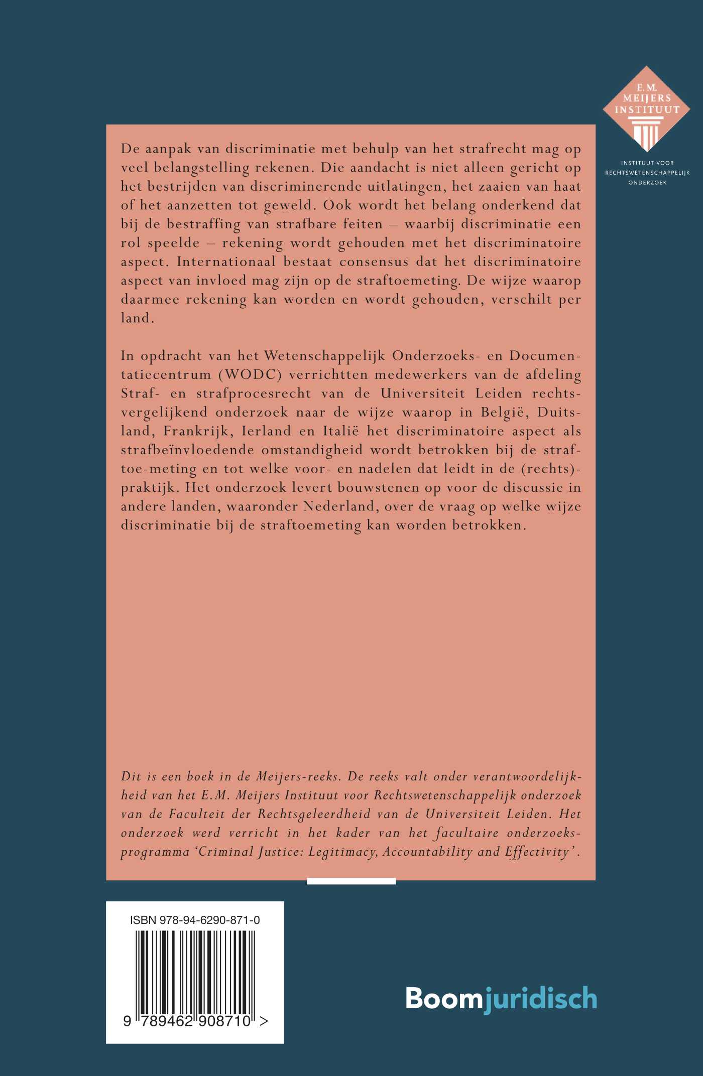 In opdracht van het Wetenschappelijk Onderzoeks- en Documentatiecentrum (WODC) verrichtten medewerkers van de afdeling Straf- en strafprocesrecht van de Universiteit Leiden rechtsvergelijkend onderzoek naar de wijze waarop in België, Duitsland, Frankrijk, Ierland en Italië het discriminatoire aspect als strafbeïnvloedende omstandigheid wordt betrokken bij de straftoe-meting en tot welke voor- en nadelen dat leidt in de (rechts)- praktijk. Het onderzoek levert bouwstenen op voor de discussie in andere landen, waaronder Nederland, over de vraag op welke wijze discriminatie bij de straftoemeting kan worden betrokken.