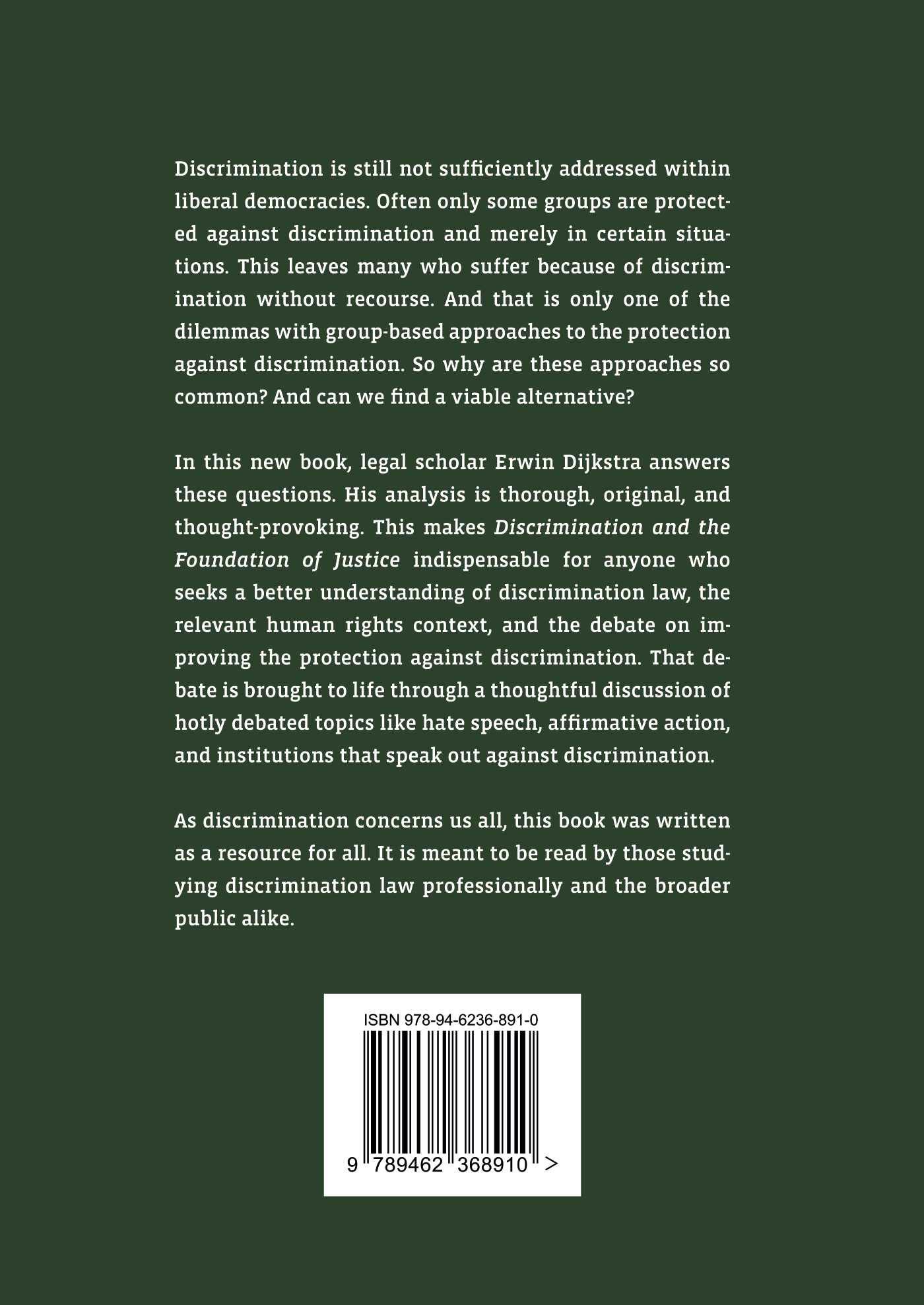 In this new book, legal scholar Erwin Dijkstra answers these questions. His analysis is thorough, original, and thought-provoking. This makes Discrimination and the Foundation of Justice indispensable for anyone who seeks a better understanding of discrimination law, the relevant human rights context, and the debate on improving the protection against discrimination. That debate is brought to life through a thoughtful discussion of hotly debated topics like hate speech, affirmative action, and institutions that speak out against discrimination.