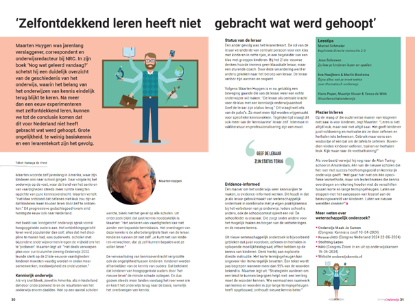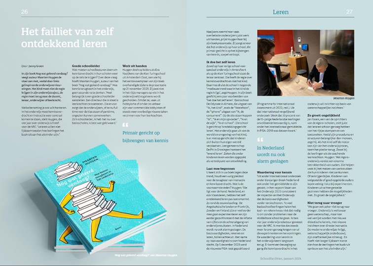 "In zijn boek ‘Nog wat geleerd vandaag?’ schetst hij een duidelijk overzicht van de geschiedenis van het onderwijs, waarin het belang van het onderwijzen van kennis eindelijk terug blijkt te keren."