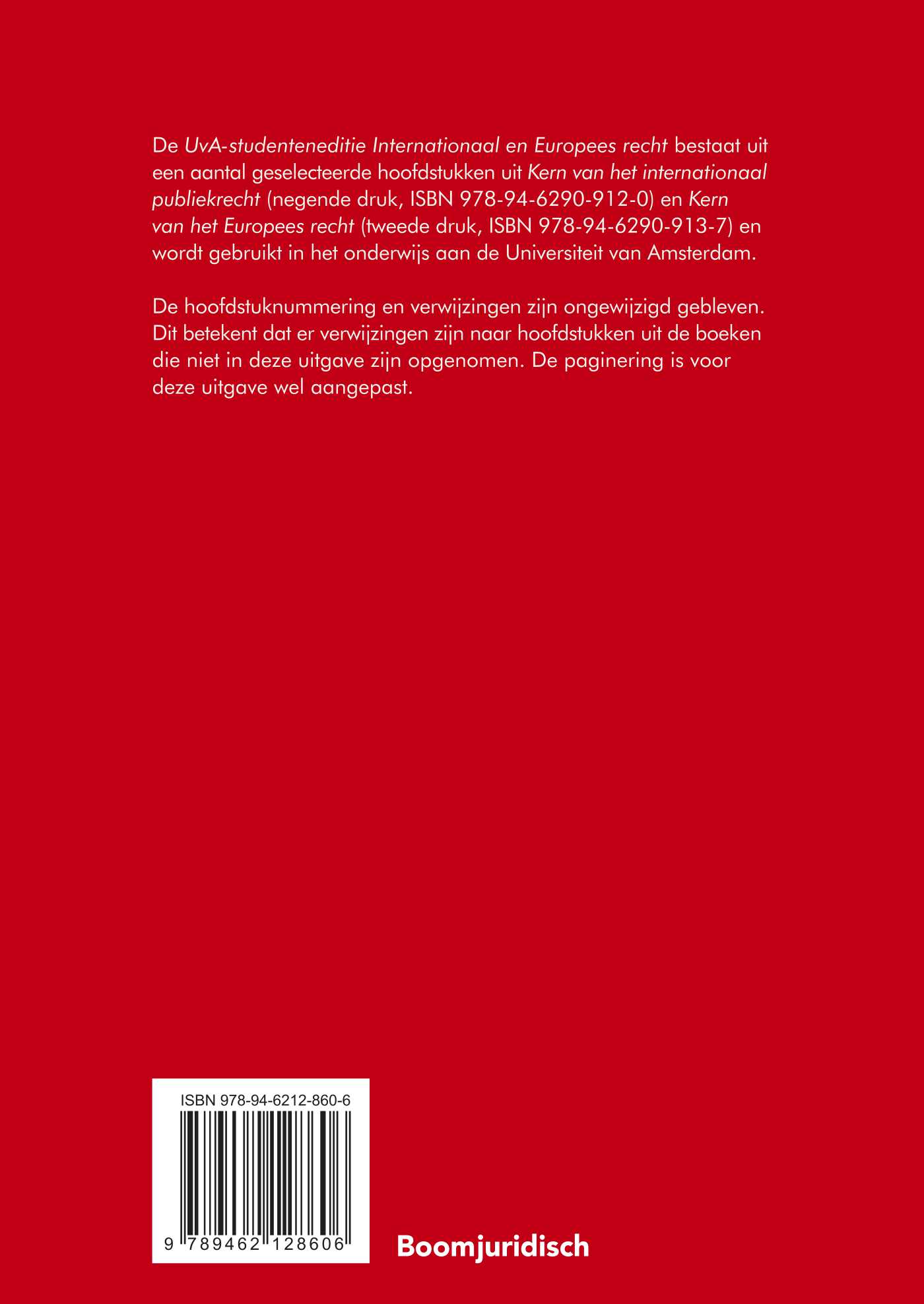 De UvA-studenteneditie Internationaal en Europees recht bestaat uit een aantal geselecteerde hoofdstukken uit Kern van het internationaal publiekrecht (negende druk, ISBN 978-94-6290-912-0) en Kern van het Europees recht (tweede druk, ISBN 978-94-6290-913-7) en wordt gebruikt in het onderwijs aan de Universiteit van Amsterdam.
