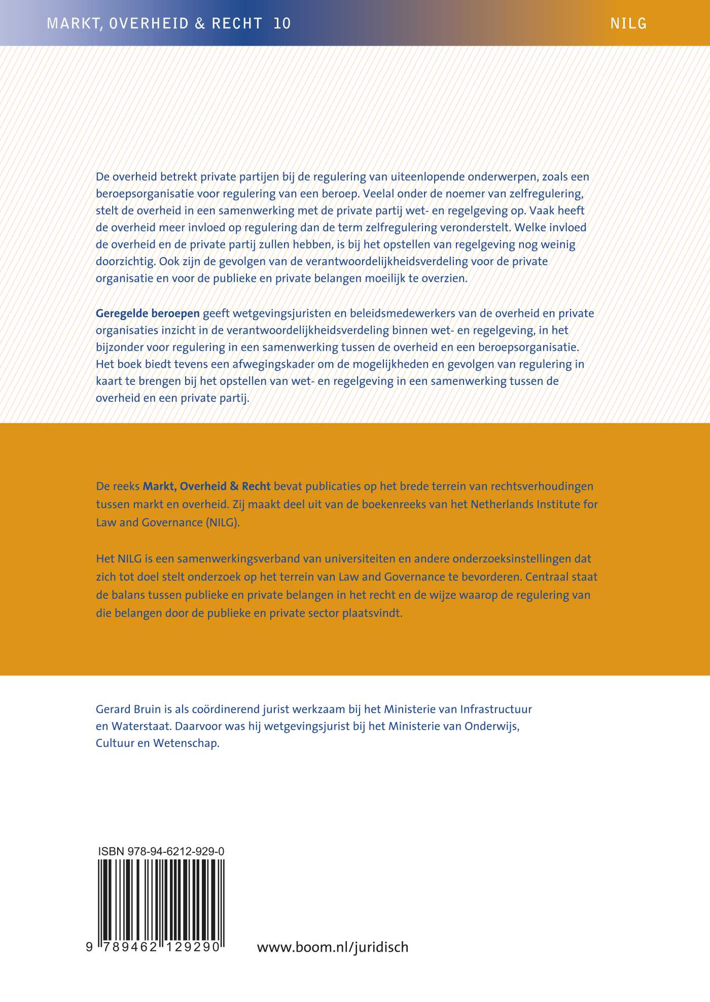 De reeks Markt, Overheid & Recht bevat publicaties op het brede terrein van rechtsverhoudingen tussen markt en overheid. Zij maakt deel uit van de boekenreeks van het Netherlands Institute for Law and Governance (NILG).