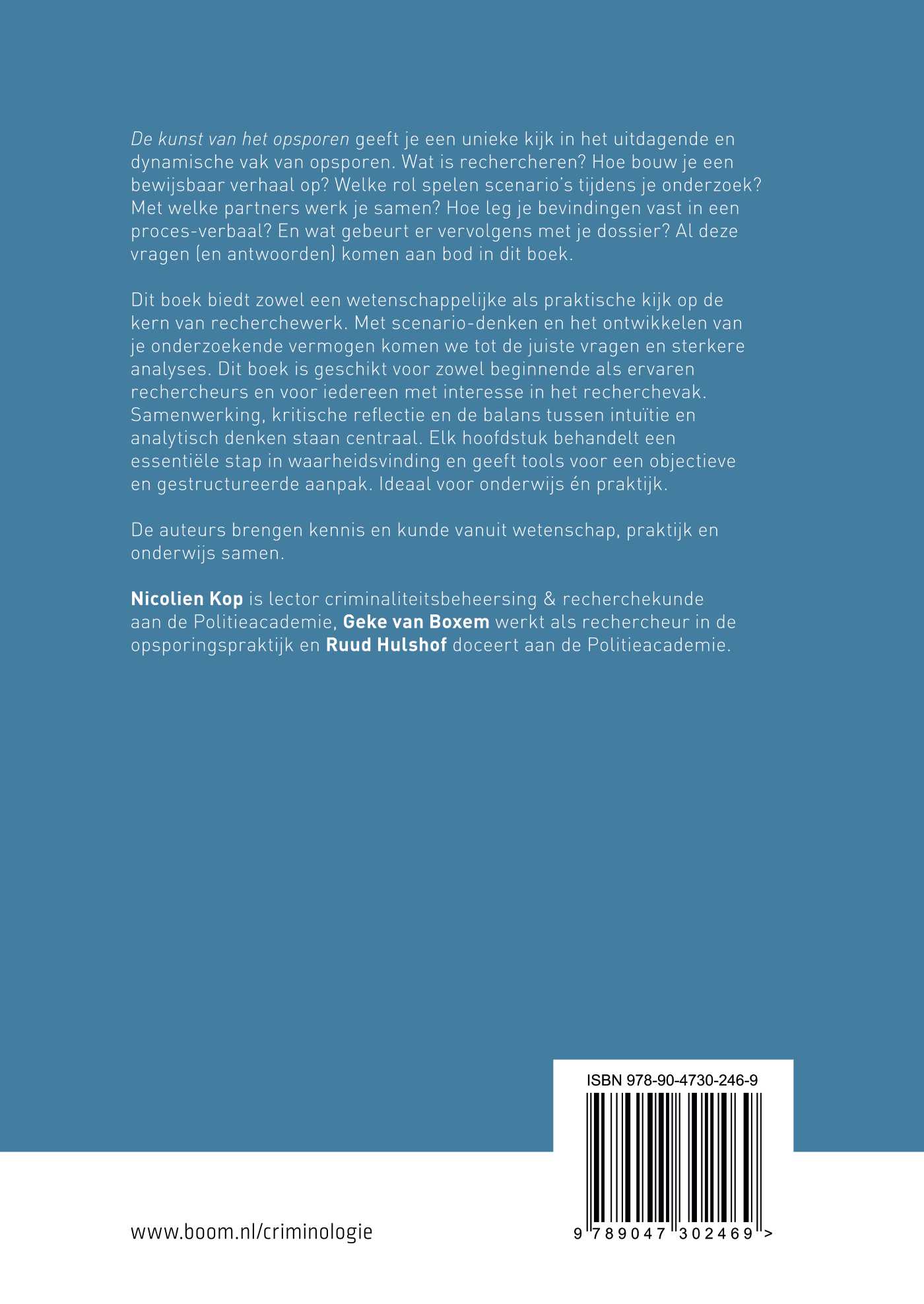 De kunst van het opsporen geeft je een unieke kijk in het uitdagende en dynamische vak van opsporen. Wat is rechercheren? Hoe bouw je een bewijsbaar verhaal op? Welke rol spelen scenario’s tijdens je onderzoek? Met welke partners werk je samen? Hoe leg je bevindingen vast in een proces-verbaal? En wat gebeurt er vervolgens met je dossier? Al deze vragen (en antwoorden) komen aan bod in dit boek.