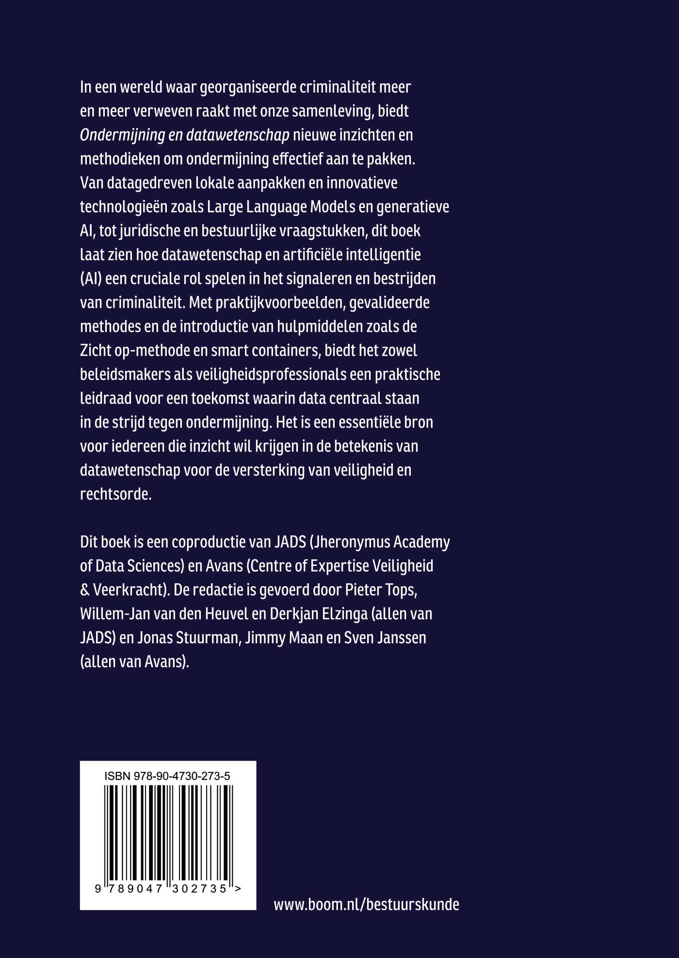In een wereld waar georganiseerde criminaliteit meer en meer verweven raakt met onze samenleving, biedt Ondermijning en datawetenschap nieuwe inzichten en methodieken om ondermijning effectief aan te pakken. Van datagedreven lokale aanpakken en innovatieve technologieën zoals Large Language Models en generatieve AI, tot juridische en bestuurlijke vraagstukken, dit boek laat zien hoe datawetenschap en artificiële intelligentie (AI) een cruciale rol spelen in het signaleren en bestrijden van criminaliteit. Met praktijkvoorbeelden, gevalideerde methodes en de introductie van hulpmiddelen zoals de Zicht op-methode en smart containers, biedt het zowel beleidsmakers als veiligheidsprofessionals een praktische leidraad voor een toekomst waarin data centraal staan in de strijd tegen ondermijning. Het is een essentiële bron voor iedereen die inzicht wil krijgen in de betekenis van datawetenschap voor de versterking van veiligheid en rechtsorde.