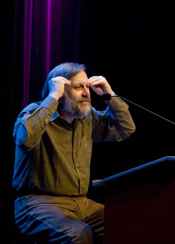 Slavoj Žižek (1949) is een Sloveense socioloog, filosoof, psychoanalyticus en cultuurcriticus. Hij wilde aanvankelijk econoom worden, maar studeerde uiteindelijk filosofie en sociologie in zijn geboortestad Ljubljana en psychoanalyse in Parijs. Momenteel is Žižek hoogleraar aan de European Graduate School. Žižek is bekend vanwege zijn indringende cultuurkritiek, waarvoor hij zijn mosterd haalt bij een ruime keur aan filosofen (waaronder Hegel, Kant, Marx, Lenin, Derrida, Ranciere, Badiou en vele anderen). Toch is zijn hoofdreferentie steevast de psychoanalytische theorie van Jacques Lacan. Žižek zet het duistere conceptenapparaat van Lacan in voor analyses in het politieke en algemeen culturele veld en gebruikt deze psychoanalytische theorieën om de postmoderne populaire cultuur te interpreteren. Žižek combineert deze analyse met zijn marxistische achtergrond in een radicale kritiek op het kapitalisme. Zijn politieke engagement blijkt ook uit het feit dat hij in 1990 presidentskandidaat was namens de partij Liberale Democratie van Slovenië. Verder becommentarieert hij recente gebeurtenissen: zo schreef hij een boek over de Irakoorlog, waarin hij de ideologische motivering van die oorlog op de schop neemt. Zijn flamboyante persoonlijkheid en polemische stijl leverde hem een hele reeks aan bijnamen op, waaronder 'the Elvis of cultural theory' en 'het denkbeest uit Ljubljana'. Hij geldt als een van de meest besproken en omstreden filosofen van de laatste jaren. Waar de een hem binnenhaalt in de avant-garde van de kritische filosofie, serveert de ander hem af als een clown en charlatan. Žižeks boeken zijn geen mooi afgeronde gehelen met systematische uitwerkingen. De stijl van deze controversiële filosoof is aforistisch. Aan de wervelwind aan schunnige moppen en beschouwingen van pulpcultuur ligt echter een grondige lectuur van de geschiedenis van de wijsbegeerte ten grondslag.
