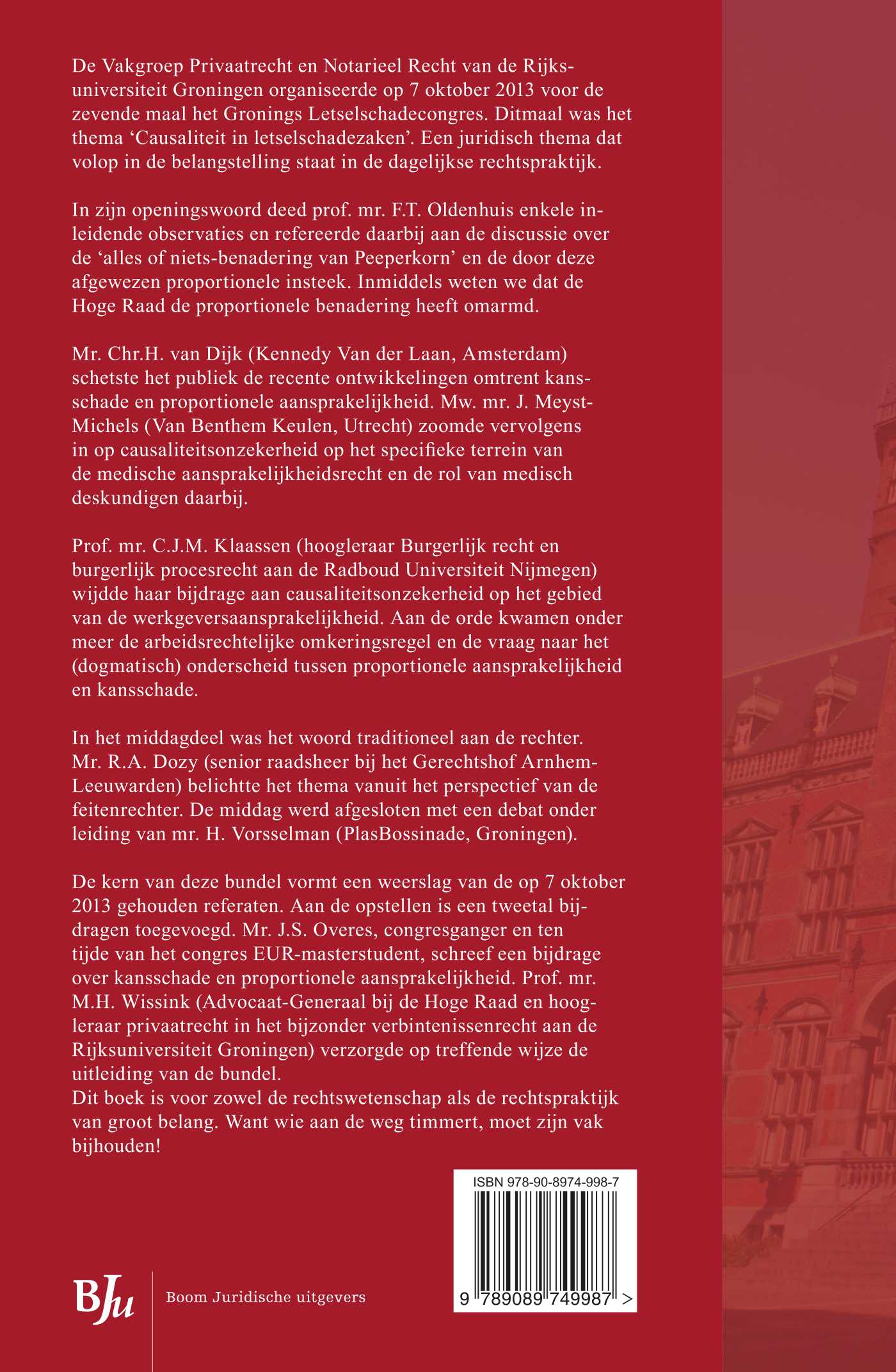 De kern van deze bundel vormt een weerslag van de op 7 oktober 2013 gehouden referaten. Aan de opstellen is een tweetal bijdragen toegevoegd. Mr. J.S. Overes, congresganger en ten tijde van het congres EUR-masterstudent, schreef een bijdrage over kansschade en proportionele aansprakelijkheid. Prof. mr. M.H. Wissink (Advocaat-Generaal bij de Hoge Raad en hoogleraar privaatrecht in het bijzonder verbintenissenrecht aan de Rijksuniversiteit Groningen) verzorgde op treffende wijze de uitleiding van de bundel.