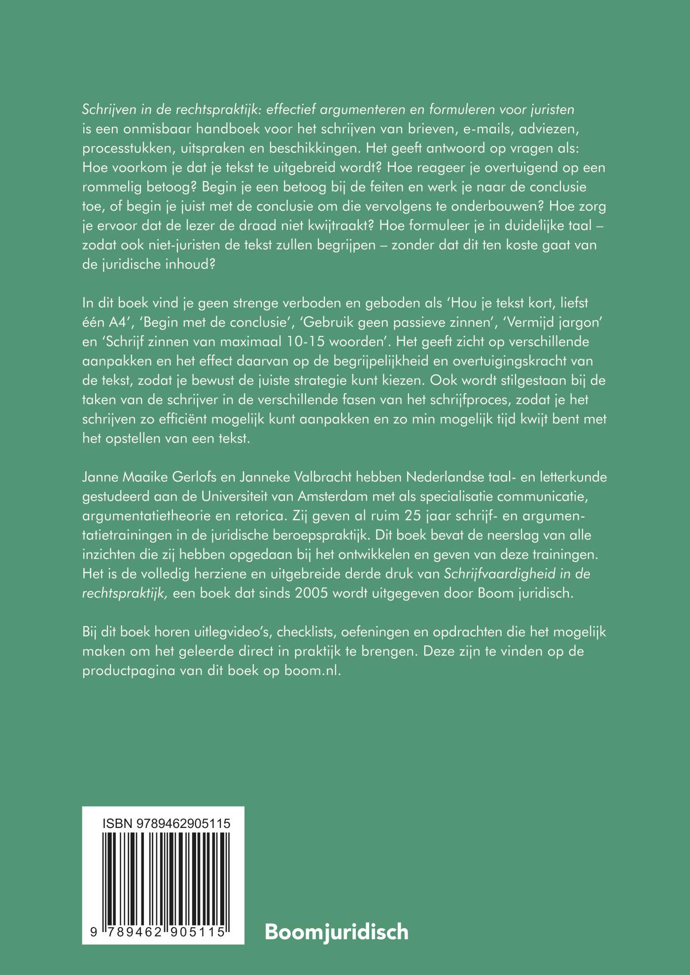 Schrijven in de rechtspraktijk: effectief argumenteren en formuleren voor juristen is een onmisbaar handboek voor het schrijven van brieven, e-mails, adviezen, processtukken, uitspraken en beschikkingen. Het geeft antwoord op vragen als: Hoe voorkom je dat je tekst te uitgebreid wordt? Hoe reageer je overtuigend op een rommelig betoog? Begin je een betoog bij de feiten en werk je naar de conclusie toe, of begin je juist met de conclusie om die vervolgens te onderbouwen? Hoe zorg je ervoor dat de lezer de draad niet kwijtraakt? Hoe formuleer je in duidelijke taal – zodat ook niet-juristen de tekst zullen begrijpen – zonder dat dit ten koste gaat van de juridische inhoud?