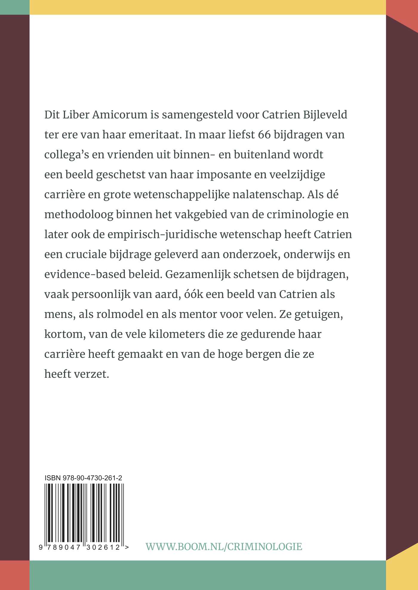 Dit Liber Amicorum is samengesteld voor Catrien Bijleveld ter ere van haar emeritaat. In maar liefst 66 bijdragen van collega’s en vrienden uit binnen- en buitenland wordt een beeld geschetst van haar imposante en veelzijdige carrière en grote wetenschappelijke nalatenschap. Als dé methodoloog binnen het vakgebied van de criminologie en later ook de empirisch-juridische wetenschap heeft Catrien een cruciale bijdrage geleverd aan onderzoek, onderwijs en evidence-based beleid. Gezamenlijk schetsen de bijdragen, vaak persoonlijk van aard, óók een beeld van Catrien als mens, als rolmodel en als mentor voor velen. Ze getuigen, kortom, van de vele kilometers die ze gedurende haar carrière heeft gemaakt en van de hoge bergen die ze heeft verzet.