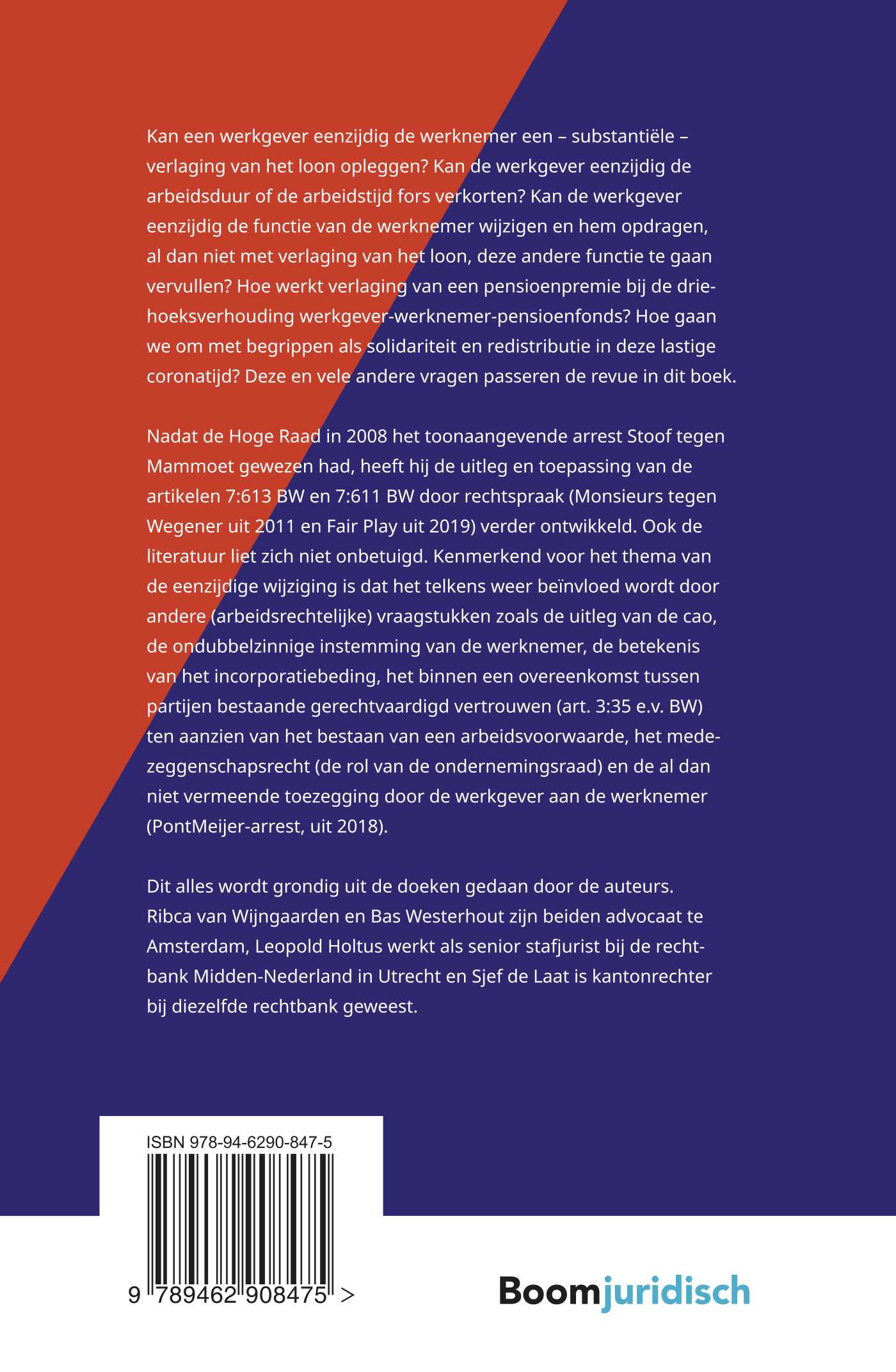 Kan een werkgever eenzijdig de werknemer een – substantiële – verlaging van het loon opleggen? Kan de werkgever eenzijdig de arbeidsduur of de arbeidstijd fors, verkorten? Kan de werkgever eenzijdig de functie van de werknemer wijzigen en hem opdragen, al dan niet met verlaging van het loon, deze andere functie te gaan vervullen? Hoe werkt verlaging van een pensioenpremie bij de drie-hoeksverhouding werkgever-werknemer-pensioenfonds? Hoe gaan we om met begrippen als solidariteit en redistributie in deze lastige coronatijd? Deze en vele andere vragen passeren de revue in dit boek.