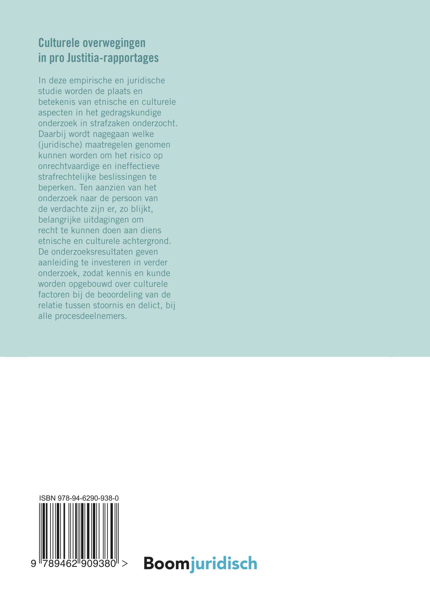 In deze empirische en juridische studie worden de plaats en betekenis van etnische en culturele aspecten in het gedragskundige onderzoek in strafzaken onderzocht. Daarbij wordt nagegaan welke (juridische) maatregelen genomen kunnen worden om het risico op onrechtvaardige en ineffectieve strafrechtelijke beslissingen te beperken. Ten aanzien van het onderzoek naar de persoon van de verdachte zijn er, zo blijkt, belangrijke uitdagingen om recht te kunnen doen aan diens etnische en culturele achtergrond. De onderzoeksresultaten geven aanleiding te investeren in verder onderzoek, zodat kennis en kunde worden opgebouwd over culturele factoren bij de beoordeling van de relatie tussen stoornis en delict, bij alle procesdeelnemers.