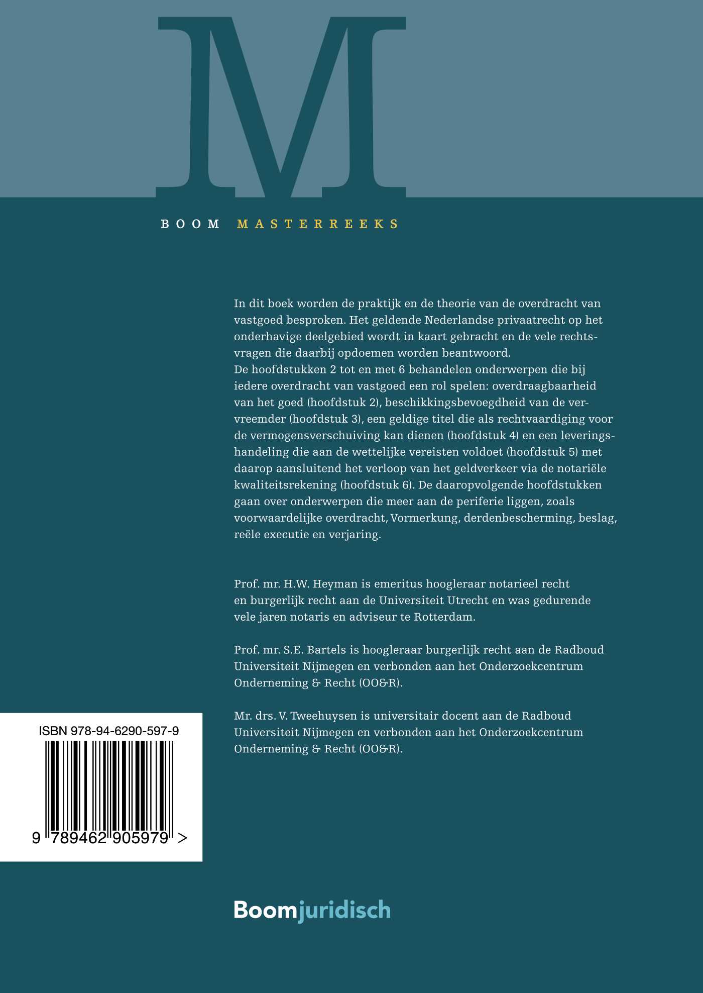 In dit boek worden de praktijk en de theorie van de overdracht van vastgoed besproken. Het geldende Nederlandse privaatrecht op het onderhavige deelgebied wordt in kaart gebracht en vele rechtsvragen die daarbij opdoemen worden beantwoord.