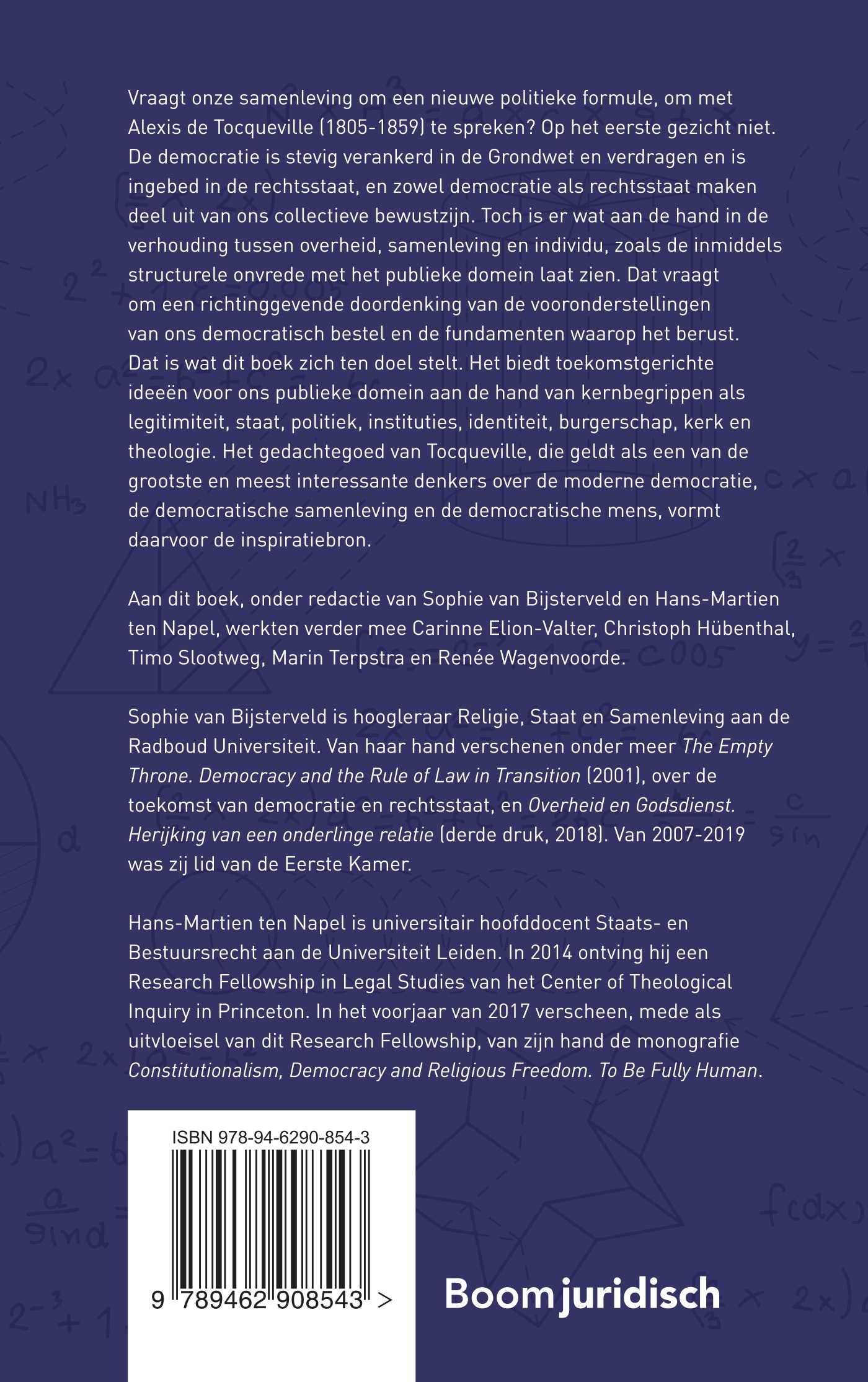 Vraagt onze samenleving om een nieuwe politieke formule, om met Alexis de Tocqueville (1805-1859) te spreken? Op het eerste gezicht niet. De democratie is stevig verankerd in de Grondwet en verdragen en is ingebed in de rechtsstaat, en zowel democratie als rechtsstaat maken deel uit van ons collectieve bewustzijn. Toch is er wat aan de hand in de verhouding tussen overheid, samenleving en individu, zoals de inmiddels structurele onvrede met het publieke domein laat zien. Dat vraagt om een richtinggevende doordenking van de vooronderstellingen van ons democratisch bestel en de fundamenten waarop het berust. Dat is wat dit boek zich ten doel stelt. Het biedt toekomstgerichte ideeën voor ons publieke domein aan de hand van kernbegrippen als legitimiteit, staat, politiek, instituties, identiteit, burgerschap, kerk en theologie. Het gedachtegoed van Tocqueville, die geldt als een van de grootste en meest interessante denkers over de moderne democratie, de democratische samenleving en de democratische mens, vormt daarvoor de inspiratiebron.