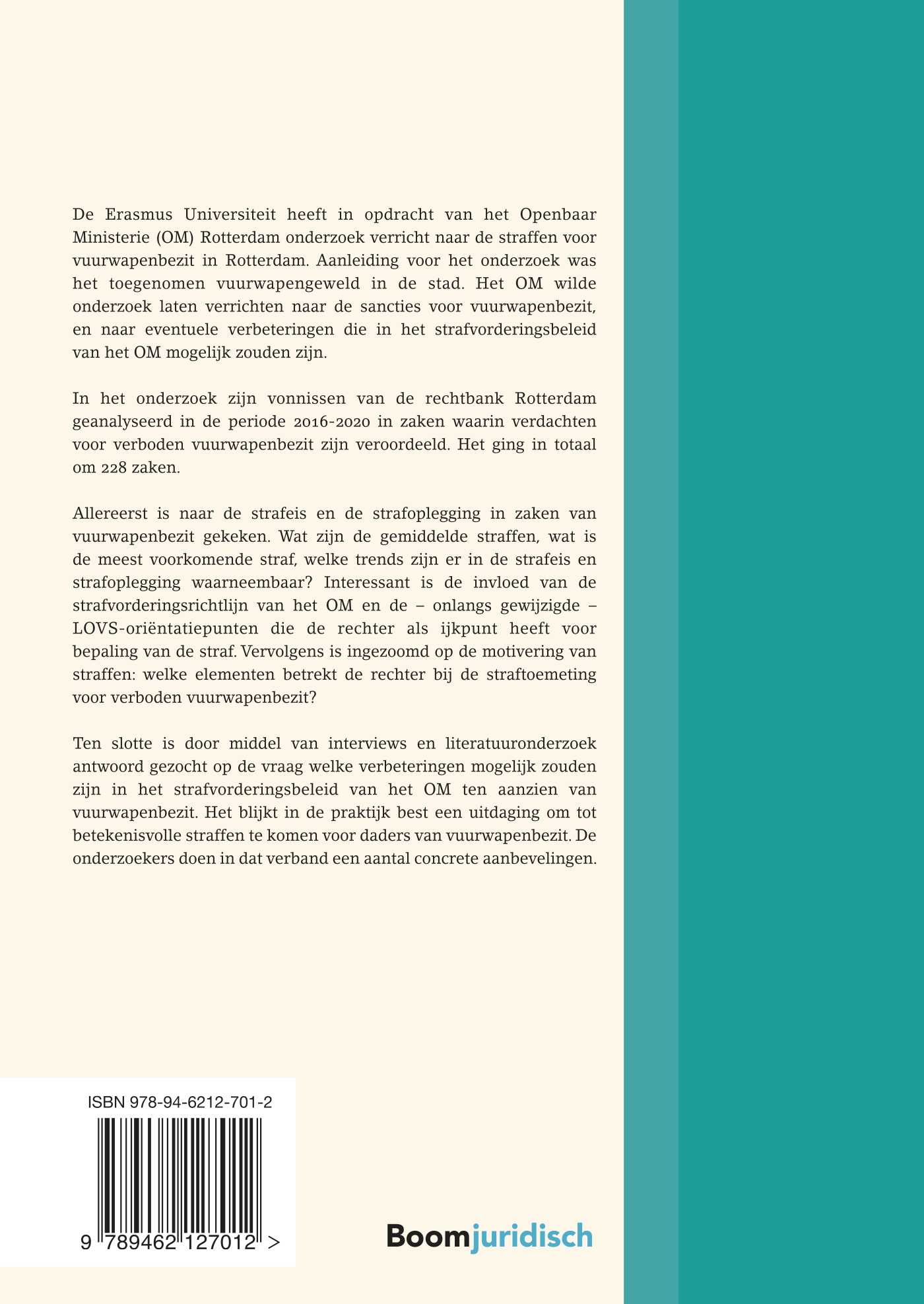 De Erasmus Universiteit heeft in opdracht van het Openbaar Ministerie (OM) Rotterdam onderzoek verricht naar de straffen voor vuurwapenbezit in Rotterdam. Aanleiding voor het onderzoek was het toegenomen vuurwapengeweld in de stad. Het OM wilde onderzoek laten verrichten naar de sancties voor vuurwapenbezit, en naar eventuele verbeteringen die in het strafvorderingsbeleid van het OM mogelijk zouden zijn.