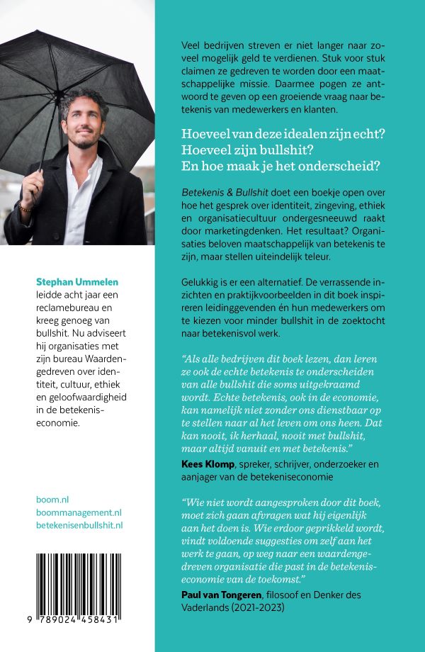 Betekenis & Bullshit doet een boekje open over hoe het gesprek over identiteit, zingeving, ethiek en organisatiecultuur ondergesneeuwd raakt door marketingdenken. Het resultaat? Organisaties beloven maatschappelijk van betekenis te zijn, maar stellen uiteindelijk teleur.