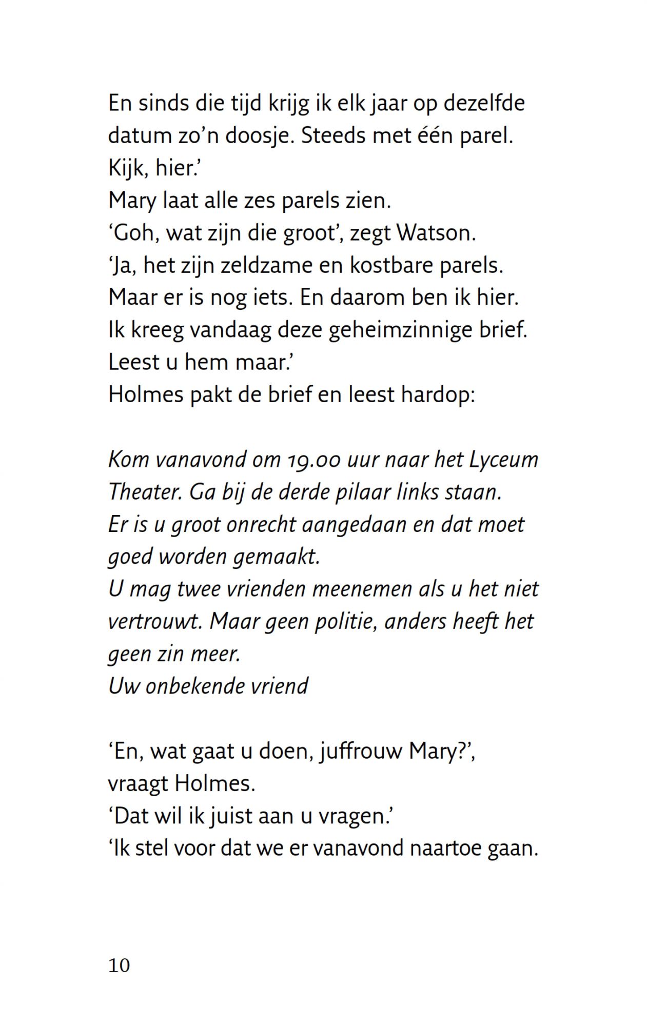 Sinds de geheimzinnige verdwijning van haar vader krijgt Mary elk jaar een cadeau: een zeldzame parel. Wie stuurt die parels? Mary roept de hulp in van detective Sherlock Holmes. Wat volgt is een spannende zoektocht naar een Indiase schat, en een moordenaar die overal 'het teken van vier' achterlaat...