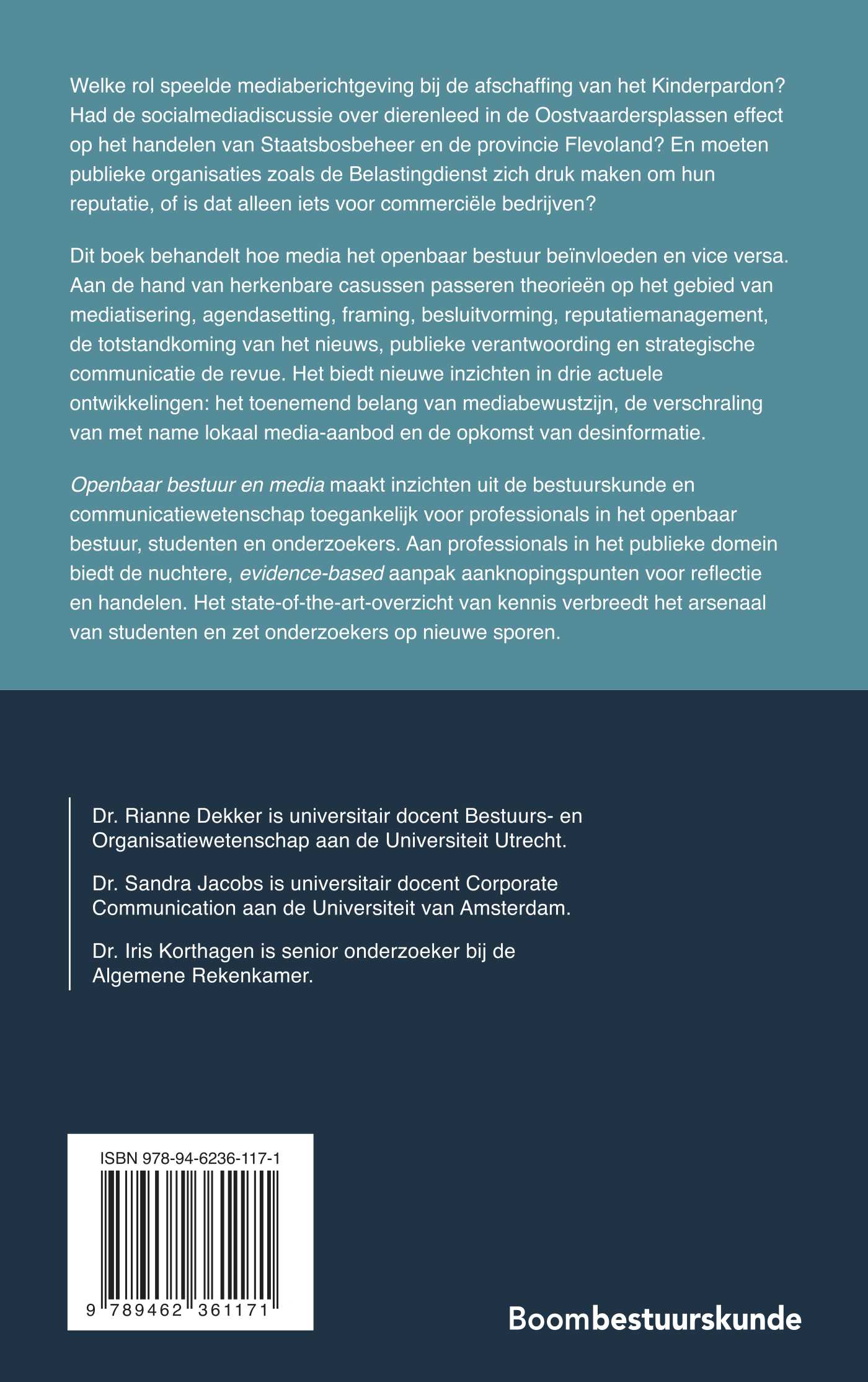 Dit boek behandelt hoe media het openbaar bestuur beïnvloeden en vice versa. Aan de hand van herkenbare casussen passeren theorieën op het gebied van mediatisering, agendasetting, framing, besluitvorming, reputatiemanagement, de totstandkoming van het nieuws, publieke verantwoording en strategische communicatie de revue. Het biedt nieuwe inzichten in drie actuele ontwikkelingen: het toenemend belang van mediabewustzijn, de verschraling van met name lokaal media-aanbod en de opkomst van desinformatie.