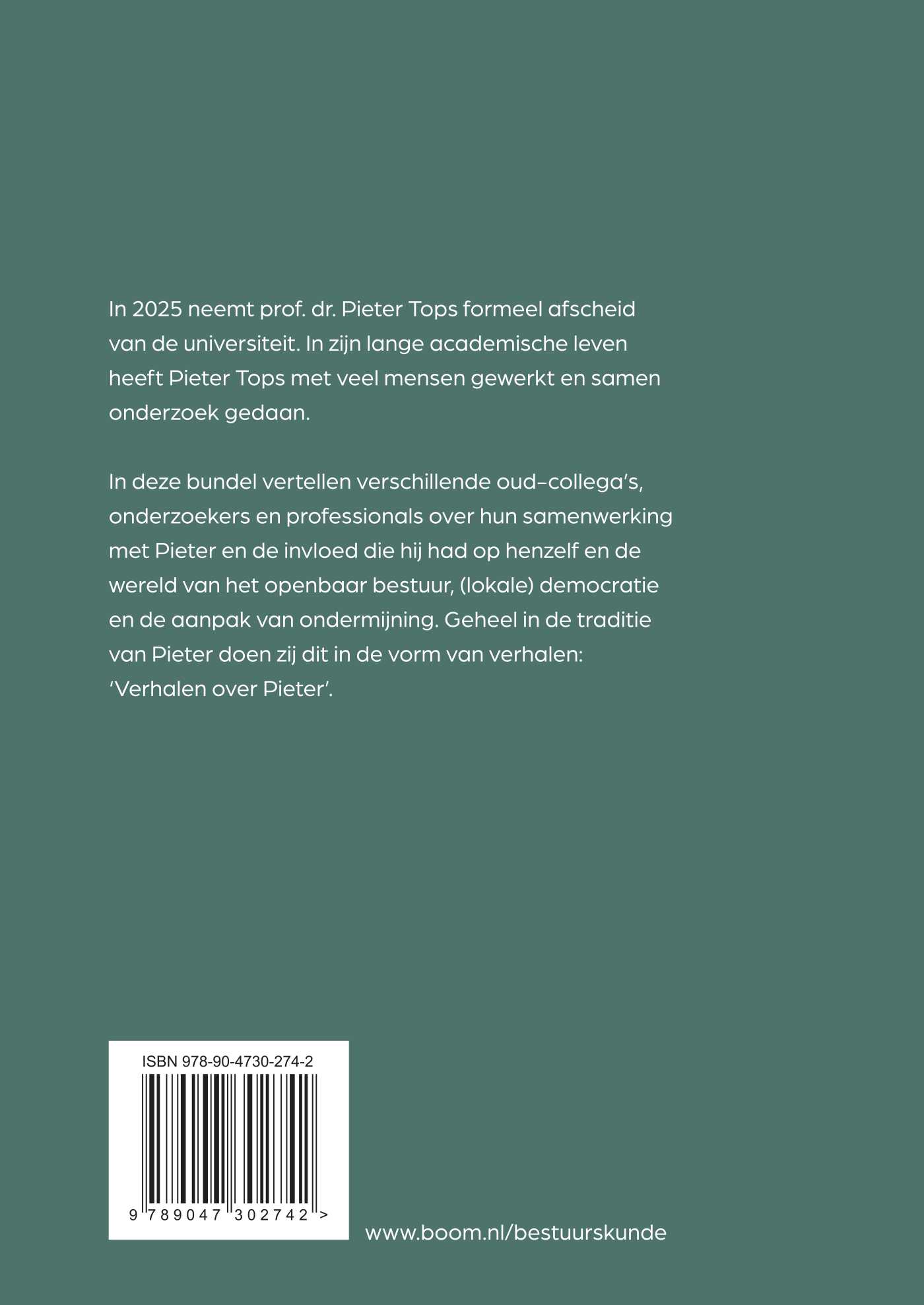 In deze bundel vertellen verschillende oud-collega’s, onderzoekers en professionals over hun samenwerking met Pieter en de invloed die hij had op henzelf en de wereld van het openbaar bestuur, (lokale) democratie en de aanpak van ondermijning. Geheel in de traditie van Pieter doen zij dit in de vorm van verhalen: ‘Verhalen over Pieter