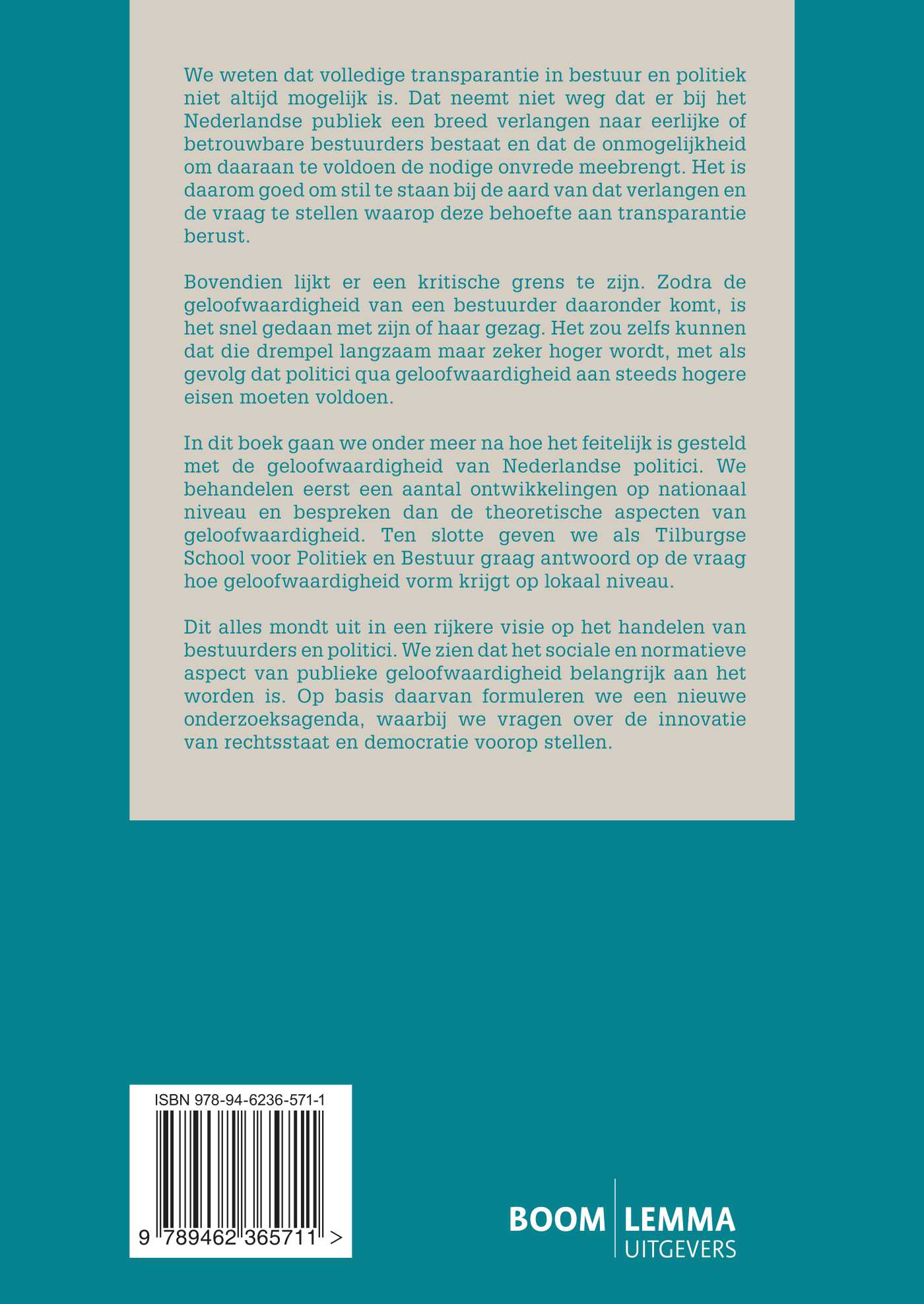 In dit boek gaan we onder meer na hoe het feitelijk is gesteld met de geloofwaardigheid van Nederlandse politici. We behandelen eerst een aantal ontwikkelingen op nationaal niveau en bespreken dan de theoretische aspecten van geloofwaardigheid. Ten slotte geven we als Tilburgse School voor Politiek en Bestuur graag antwoord op de vraag hoe geloofwaardigheid vorm krijgt op lokaal niveau. Dit alles mondt uit in een rijkere visie op het handelen van bestuurders en politici. We zien dat het sociale en normatieve aspect van publieke geloofwaardigheid belangrijk aan het worden is. Op basis daarvan formuleren we een nieuwe onderzoeksagenda, waarbij we vragen over de innovatie van rechtsstaat en democratie voorop stellen.