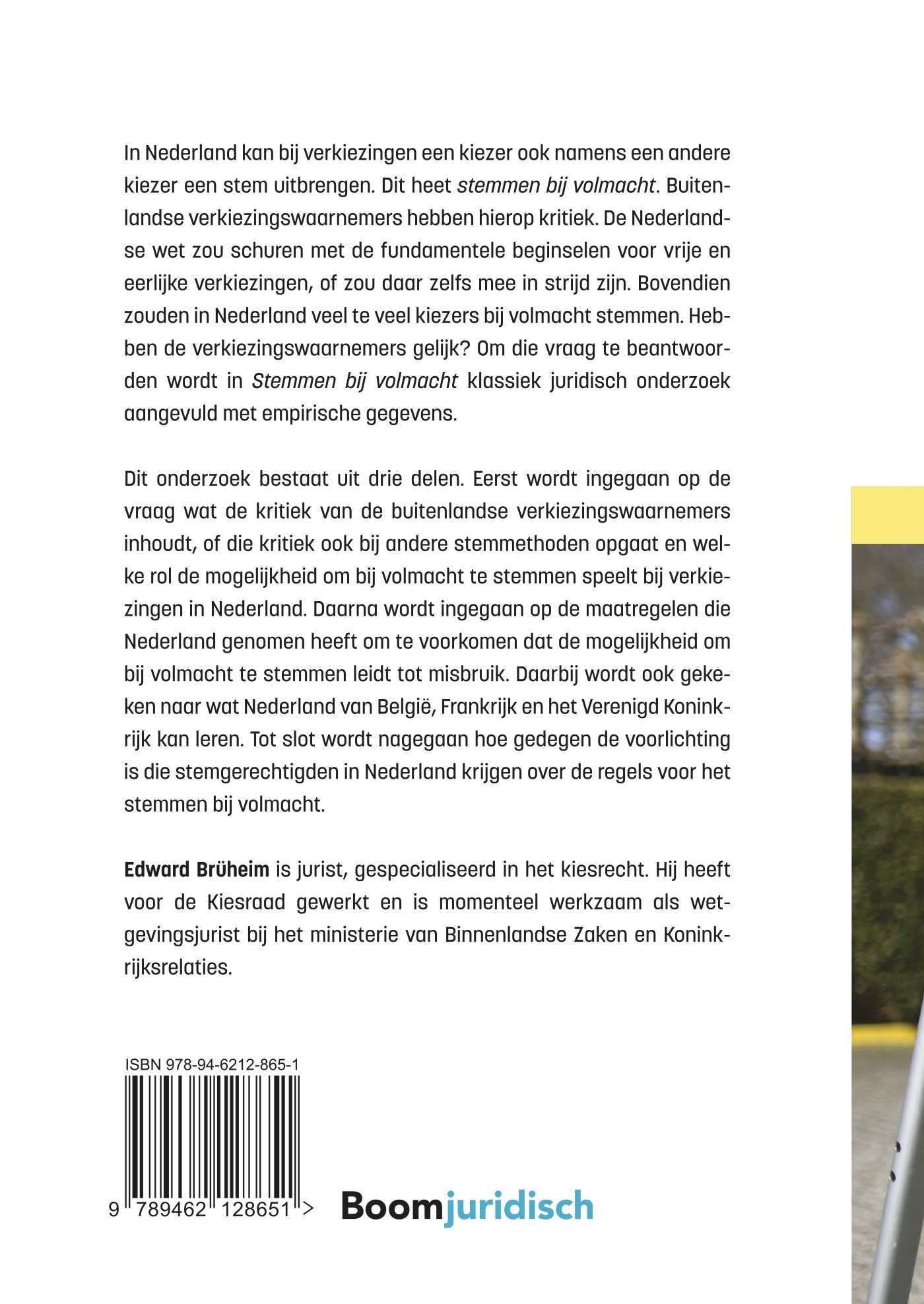 In Nederland kan bij verkiezingen een kiezer ook namens een andere kiezer een stem uitbrengen. Dit heet stemmen bij volmacht. Buitenlandse verkiezingswaarnemers hebben hierop kritiek. De Nederlandse wet zou schuren met de fundamentele beginselen voor vrije en eerlijke verkiezingen, of zou daar zelfs mee in strijd zijn. Bovendien zouden in Nederland veel te veel kiezers bij volmacht stemmen. Hebben de verkiezingswaarnemers gelijk? Om die vraag te beantwoorden wordt in Stemmen bij volmacht klassiek juridisch onderzoek aangevuld met empirische gegevens.