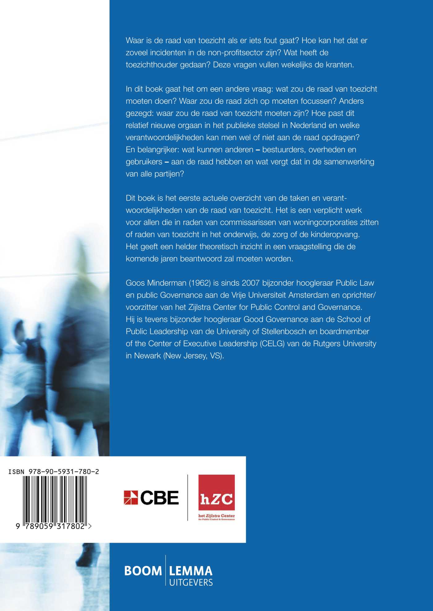 In dit boek gaat het om een andere vraag: wat zou de raad van toezicht moeten doen? Waar zou de raad zich op moeten focussen? Anders gezegd: waar zou de raad van toezicht moeten zijn? Hoe past dit relatief nieuwe orgaan in het publieke stelsel in Nederland en welke verantwoordelijkheden kan men wel of niet aan de raad opdragen? En belangrijker: wat kunnen anderen – bestuurders, overheden en gebruikers – aan de raad hebben en wat vergt dat in de samenwerking van alle partijen?