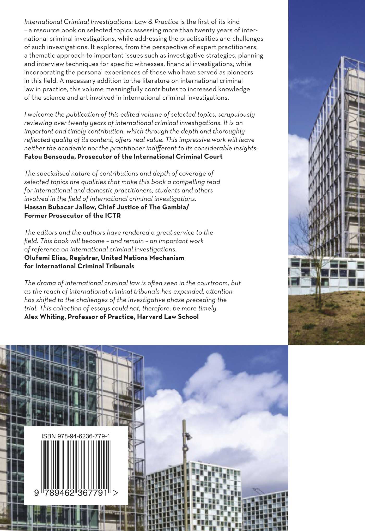 I welcome the publication of this edited volume of selected topics, scrupulously reviewing over twenty years of international criminal investigations. It is an important and timely contribution, which through the depth and thoroughly reflected quality of its content, offers real value. This impressive work will leave neither the academic nor the practitioner indifferent to its considerable insights. Fatou Bensouda, Prosecutor of the International Criminal Court