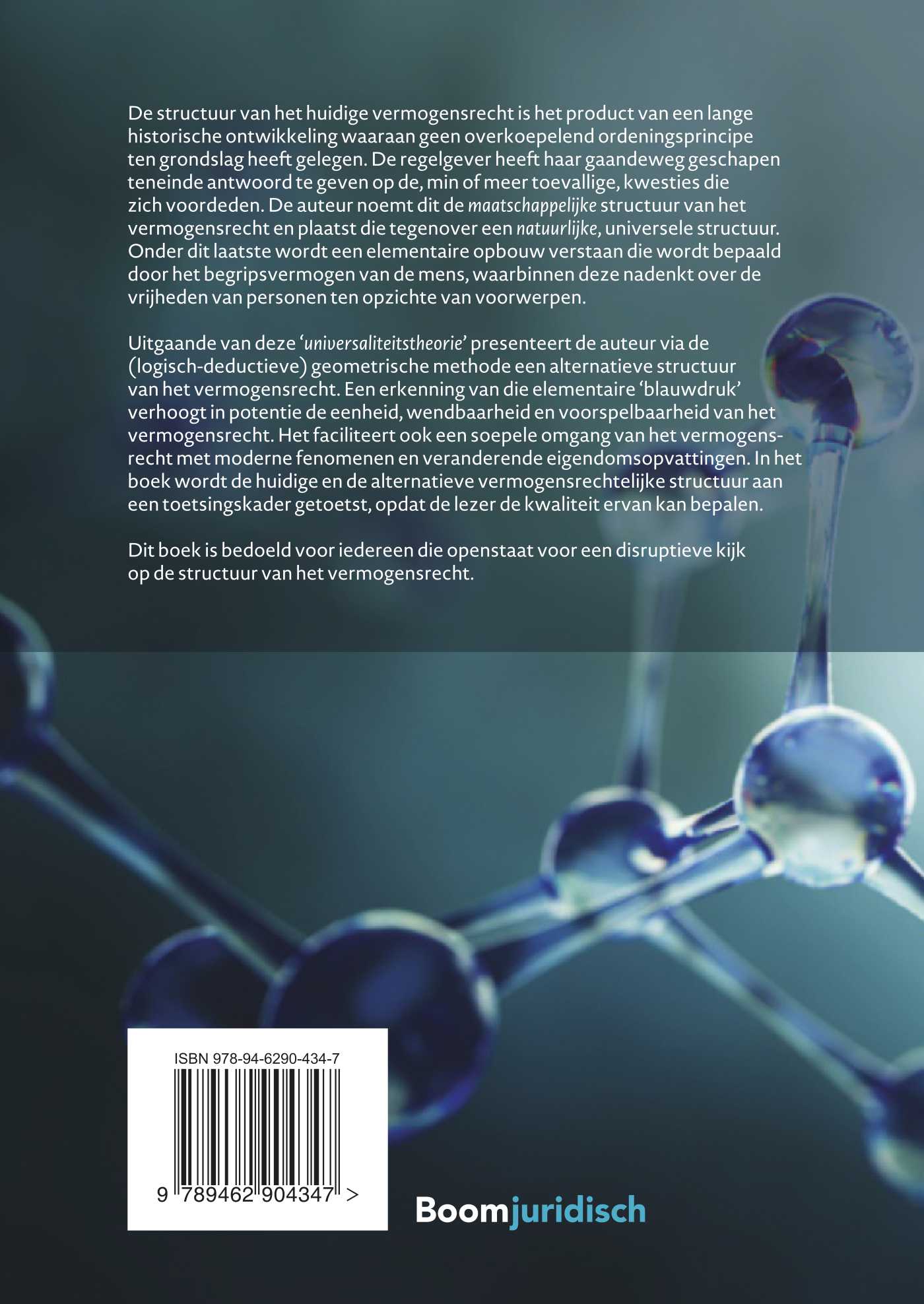 vermogensrecht. Het faciliteert ook een soepele omgang van het vermogensrecht met moderne fenomenen en veranderende eigendoms opvattingen. In het boek wordt de huidige en de alternatieve vermogensrechtelijke structuur aan een toetsingskader getoetst, opdat de lezer de kwaliteit ervan kan bepalen.