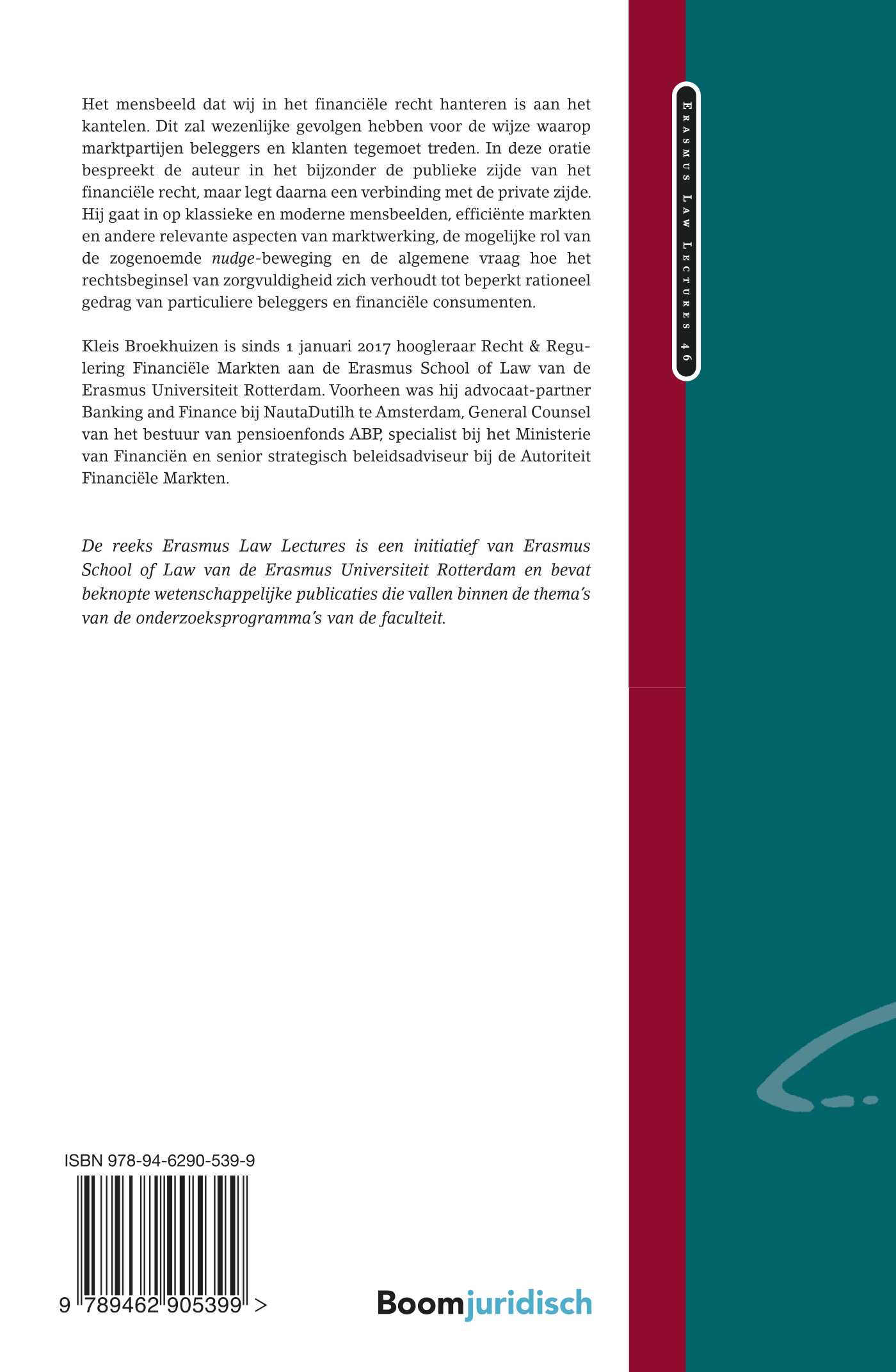 Het mensbeeld dat wij in het financiële recht hanteren is aan het kantelen. Dit zal wezenlijke gevolgen hebben voor de wijze waarop marktpartijen beleggers en klanten tegemoet treden. In deze oratie bespreekt de auteur in het bijzonder de publieke zijde van het financiële recht, maar legt daarna een verbinding met de private zijde. Hij gaat in op klassieke en moderne mensbeelden, efficiënte markten en andere relevante aspecten van marktwerking, de mogelijke rol van de zogenoemde nudge-beweging en de algemene vraag hoe het rechtsbeginsel van zorgvuldigheid zich verhoudt tot beperkt rationeel gedrag van particuliere beleggers en financiële consumenten.