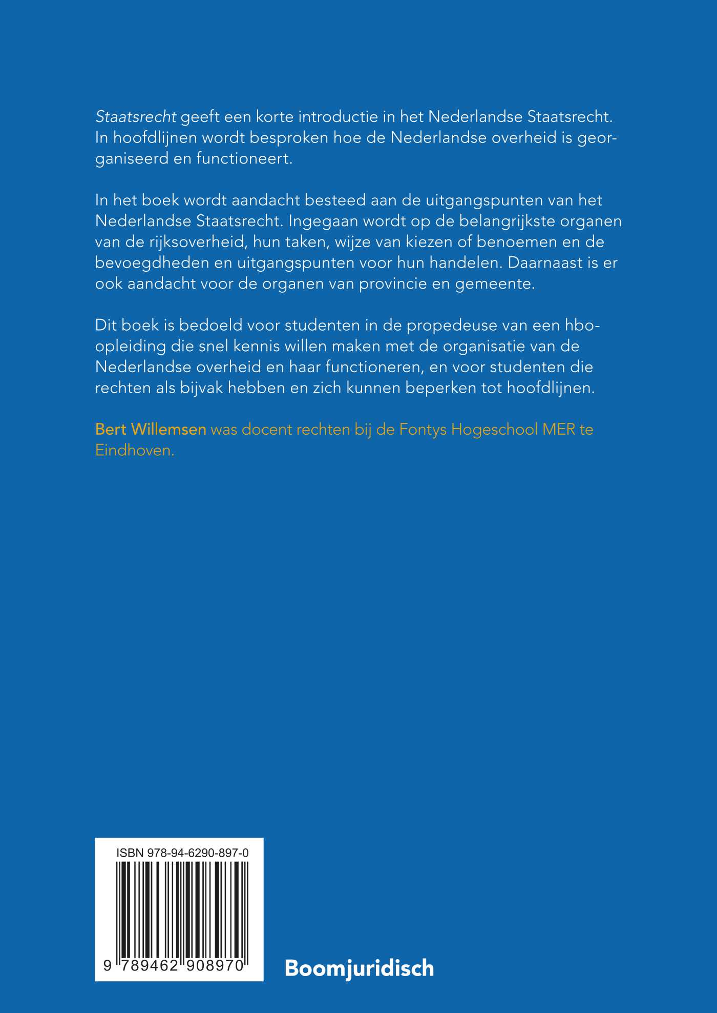 Staatsrecht geeft een korte introductie in het Nederlandse Staatsrecht. In hoofdlijnen wordt besproken hoe de Nederlandse overheid is georganiseerd en functioneert.