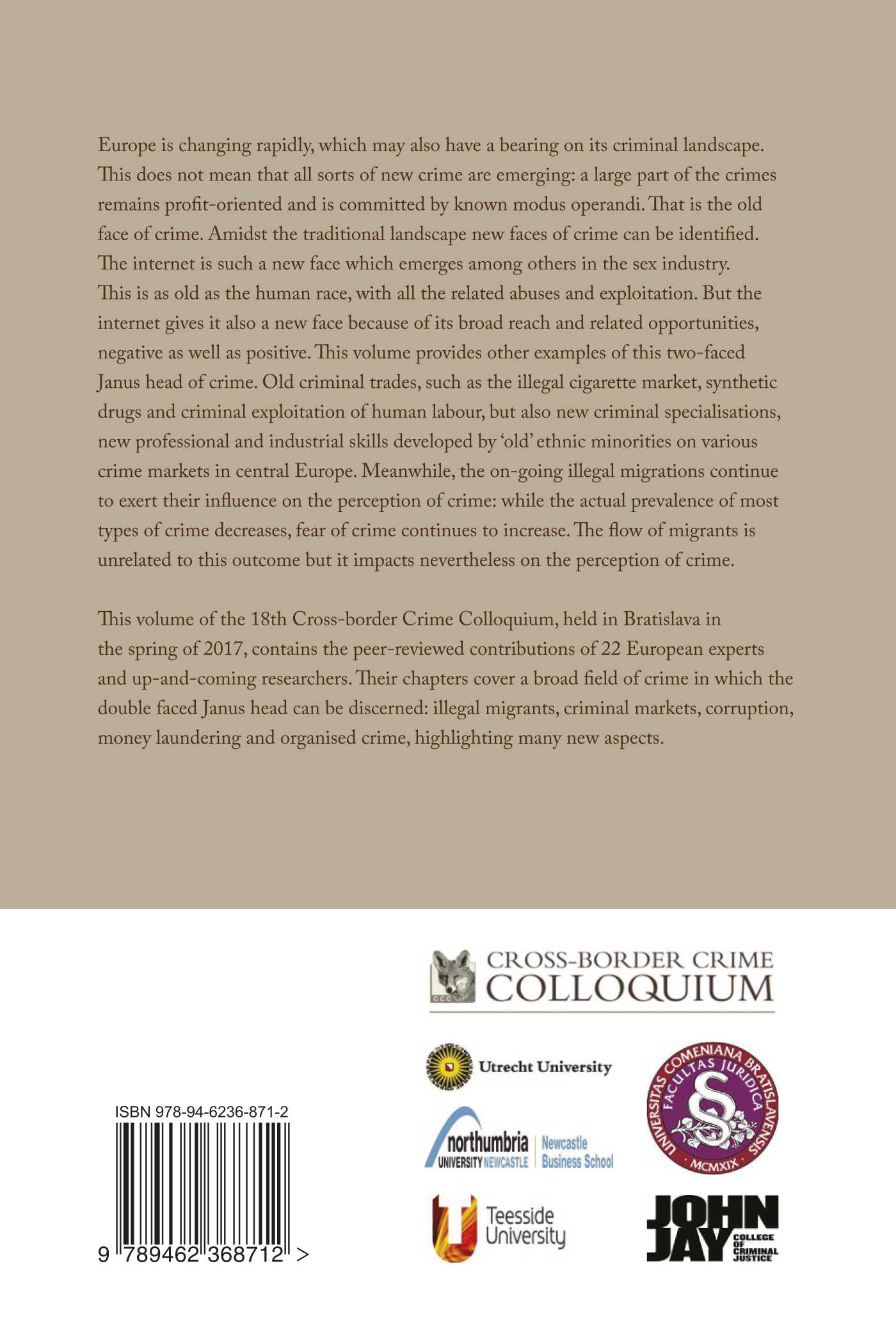 This volume of the 18th Cross-border Crime Colloquium, held in Bratislava in the spring of 2017, contains the peer-reviewed contributions of 22 European experts and up-and-coming researchers. Their chapters cover a broad field of crime in which the double faced Janus head can be discerned: illegal migrants, criminal markets, corruption, money laundering and organised crime, highlighting many new aspects.