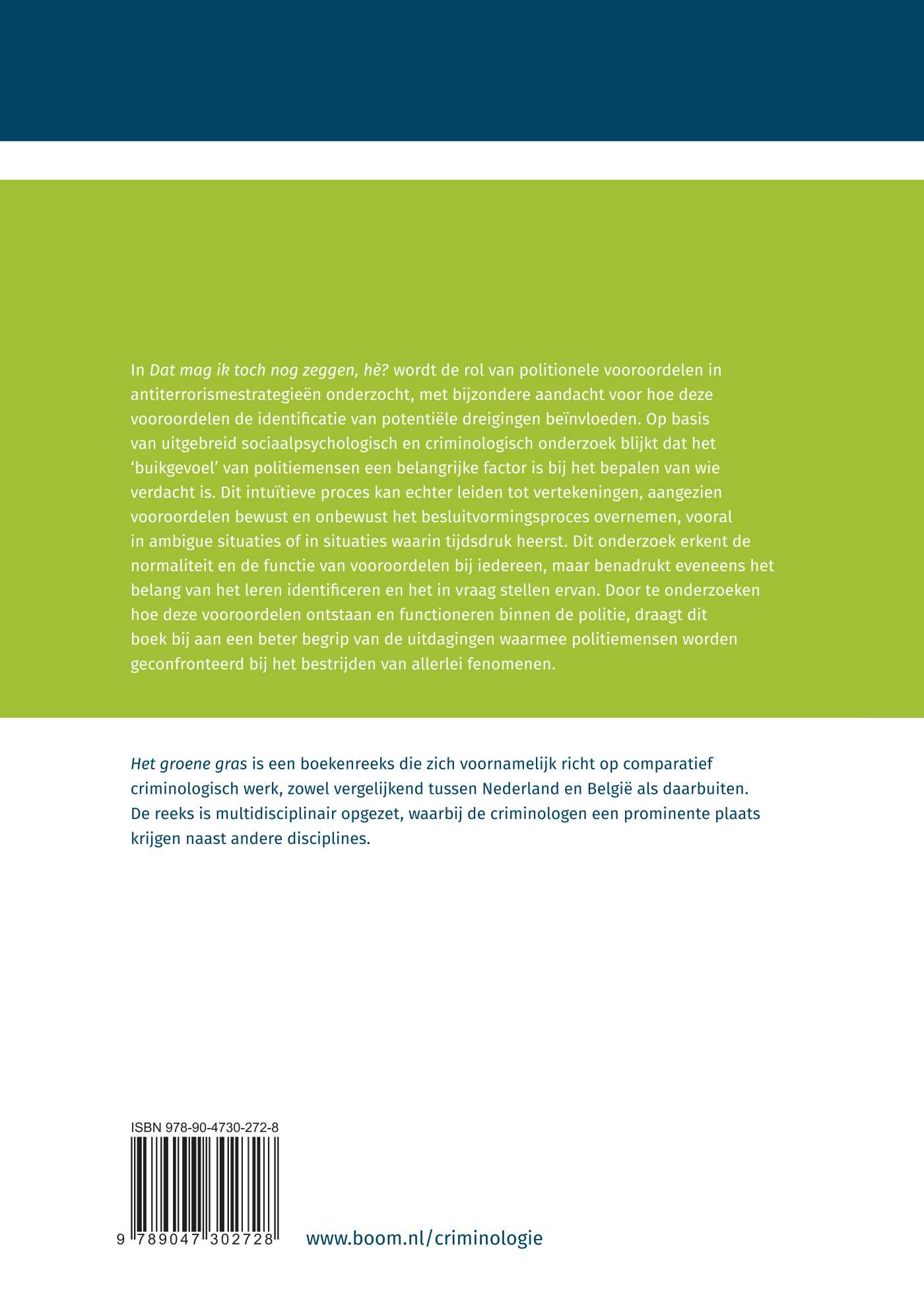 Het groene gras is een boekenreeks die zich voornamelijk richt op comparatief criminologisch werk, zowel vergelijkend tussen Nederland en België als daarbuiten. De reeks is multidisciplinair opgezet, waarbij de criminologen een prominente plaats krijgen naast andere disciplines.