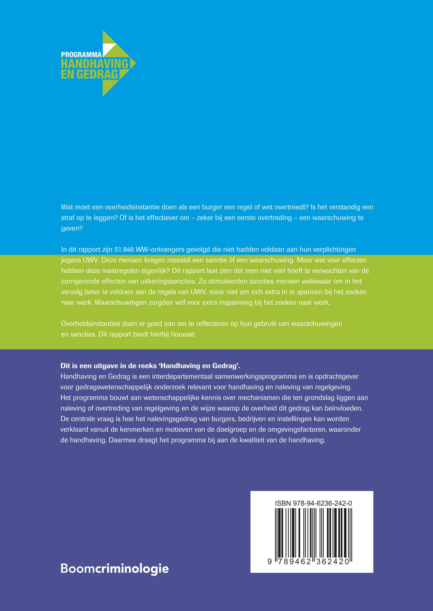 In dit rapport zijn 51.848 WW-ontvangers gevolgd die niet hadden voldaan aan hun verplichtingen jegens UWV. Deze mensen kregen meestal een sanctie óf een waarschuwing. Maar wat voor effecten hebben deze maatregelen eigenlijk? Dit rapport laat zien dat men niet veel hoeft te verwachten van de corrigerende effecten van uitkeringssancties. Zo stimuleerden sancties mensen weliswaar om in het vervolg beter te voldoen aan de regels van UWV, maar niet om zich extra in te spannen bij het zoeken naar werk. Waarschuwingen zorgden wél voor extra inspanning bij het zoeken naar werk.