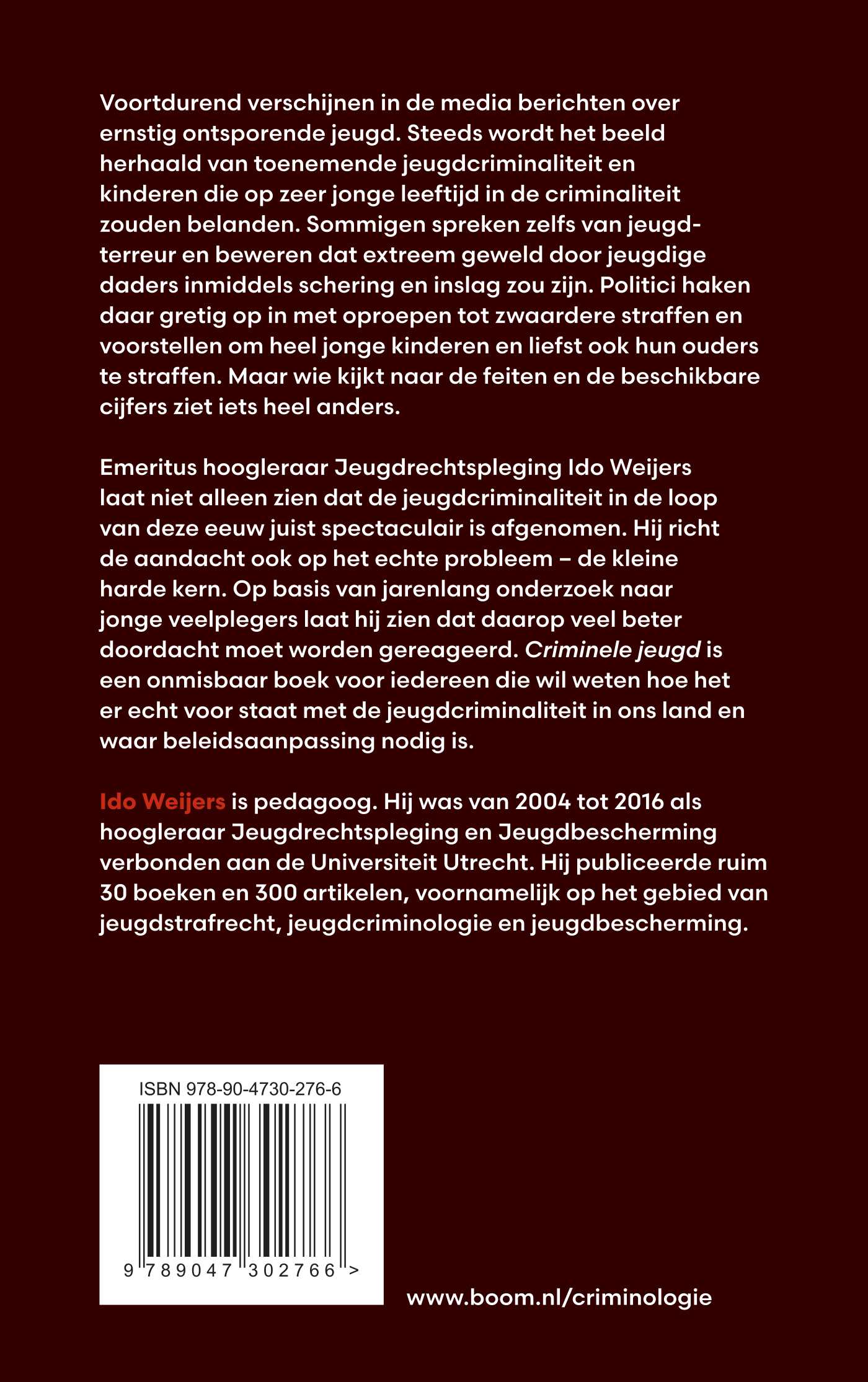 Maar wie kijkt naar de feiten en de beschikbare cijfers ziet iets heel anders. Emeritus hoogleraar Jeugdrechtspleging Ido Weijers laat niet alleen zien dat de jeugdcriminaliteit in de loop van deze eeuw juist spectaculair is afgenomen. Hij richt de aandacht ook op het echte probleem – de kleine harde kern. Op basis van jarenlang onderzoek naar jonge veelplegers laat hij zien dat daarop veel beter doordacht moet worden gereageerd.