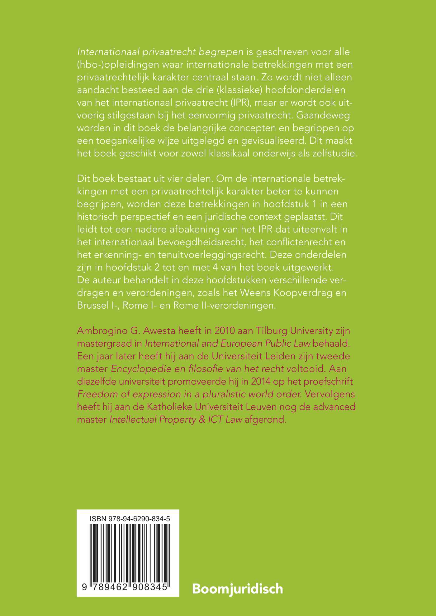 Internationaal privaatrecht begrepen is geschreven voor alle (hbo-)opleidingen waar internationale betrekkingen met een privaatrechtelijk karakter centraal staan. Zo wordt niet alleen aandacht besteed aan de drie (klassieke) hoofdonderdelen van het internationaal privaatrecht (IPR), maar er wordt ook uitvoerig stilgestaan bij het eenvormig privaatrecht. Gaandeweg worden in dit boek de belangrijke concepten en begrippen op een toegankelijke wijze uitgelegd en gevisualiseerd. Dit maakt het boek geschikt voor zowel klassikaal onderwijs als zelfstudie.