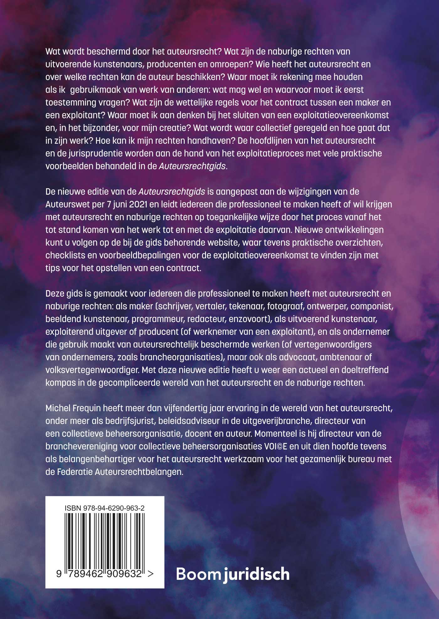 De nieuwe editie van de Auteursrechtgids is aangepast aan de wijzigingen van de Auteurswet per 7 juni 2021 en leidt iedereen die professioneel te maken heeft of wil krijgen met auteursrecht en naburige rechten op toegankelijke wijze door het proces vanaf het tot stand komen van het werk tot en met de exploitatie daarvan. Nieuwe ontwikkelingen kunt u volgen op de bij de gids behorende website (www.auteursrecht.nl/auteursrechtgids), waar tevens praktische overzichten, checklists en voorbeeldbepalingen voor de exploitatieovereenkomst te vinden zijn met tips voor het opstellen van een contract.
