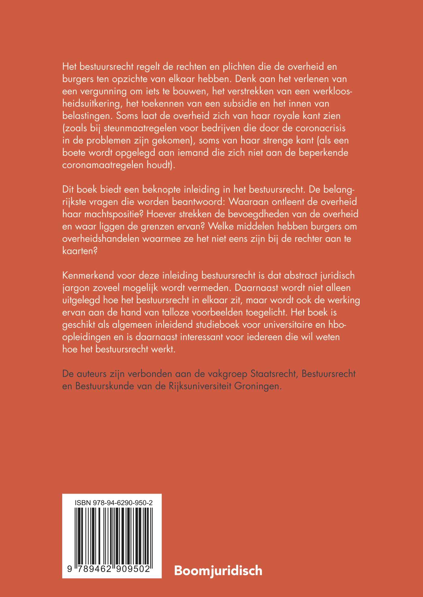 Kenmerkend voor deze inleiding bestuursrecht is dat abstract juridisch jargon zoveel mogelijk wordt vermeden. Daarnaast wordt niet alleen uitgelegd hoe het bestuursrecht in elkaar zit, maar wordt ook de werking ervan aan de hand van talloze voorbeelden toegelicht. Het boek is geschikt als algemeen inleidend studieboek voor universitaire en hbo-opleidingen en is daarnaast interessant voor iedereen die wil weten hoe het bestuursrecht werkt.