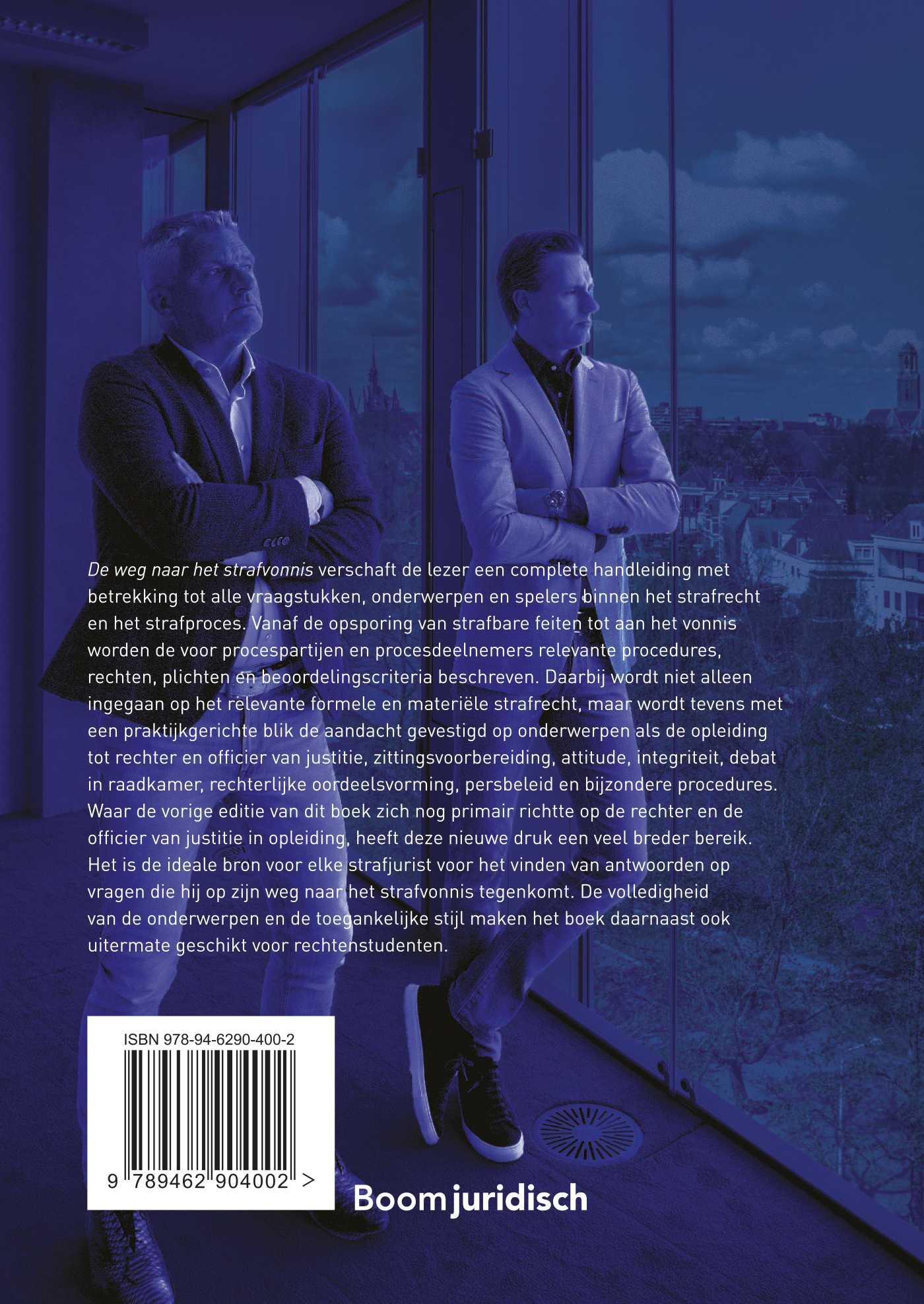 De weg naar het strafvonnis verschaft de lezer een complete handleiding met betrekking tot nagenoeg alle vraagstukken, onderwerpen en spelers binnen het strafrecht en het strafproces. Vanaf de opsporing van strafbare feiten tot aan het vonnis worden de voor procespartijen en procesdeelnemers relevante procedures, rechten, plichten en beoordelingscriteria beschreven. Daarbij wordt niet alleen ingegaan op het relevante formele- en materiële strafrecht, maar wordt met een praktijkgerichte blik tevens de aandacht gevestigd op onderwerpen als de opleiding tot rechter en officier van justitie, zittingsvoorbereiding, attitude, integriteit, het debat in raadkamer, rechterlijke oordeelsvorming, persbeleid en bijzondere procedures. Voorts wordt per leerstuk, voor zover relevant, het komende recht aan de hand van het nieuwe Wetboek van Strafvordering besproken.