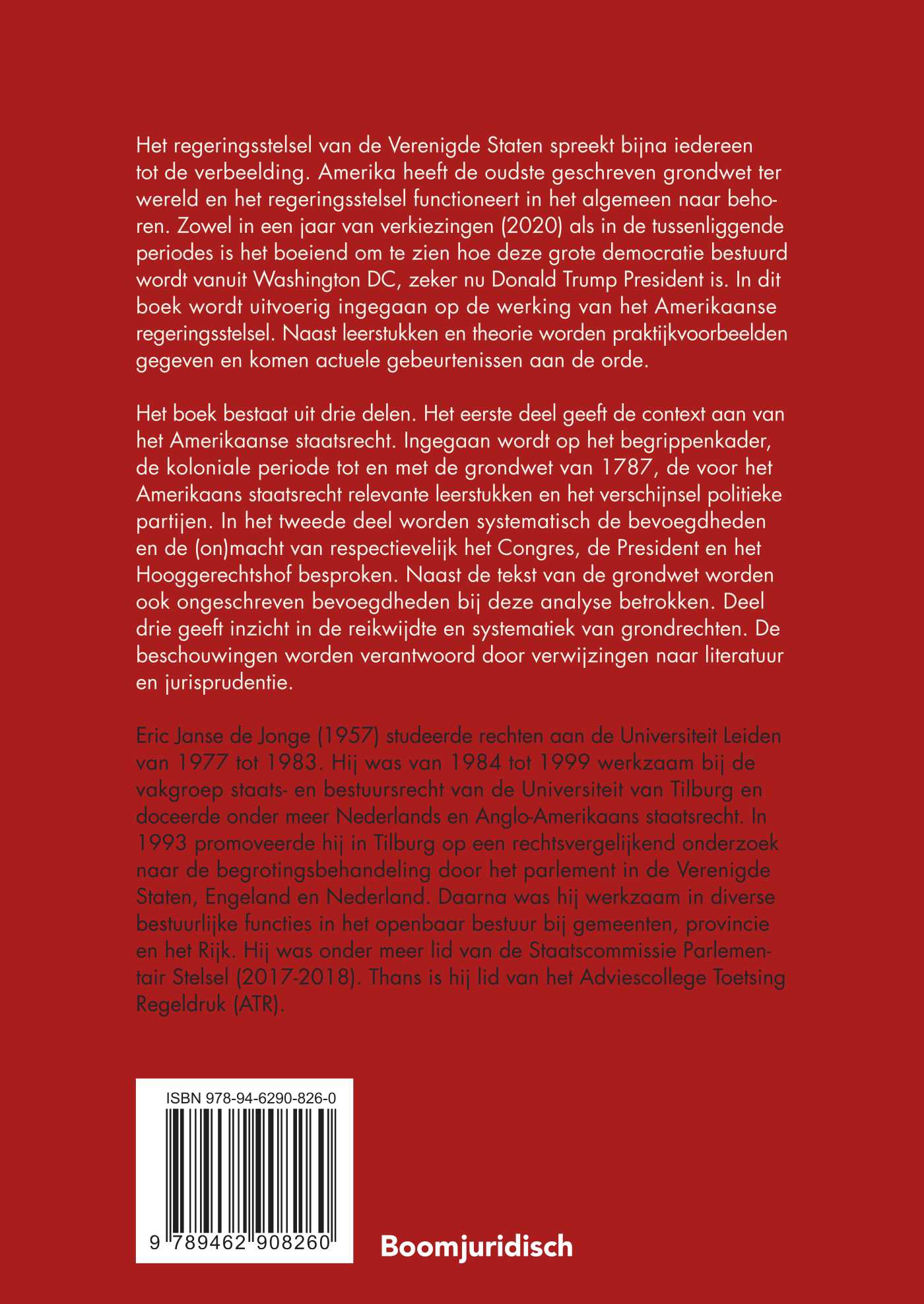 'Concluderend heeft Eric Janse de Jonge een voortreffelijk handboek over het Amerikaans staatsrecht geschreven dat gedetailleerd het ontstaan, vorming en situering beschrijft in zijn rechtshistorische context. Het boek is geannoteerd en elk hoofdstuk is aan het einde voorzien van literatuurtips. Het boek is tijdloos en moet eigenlijk bij iedereen in de kast staan. Niet alleen omdat het goed is geschreven, maar omdat Amerika nog steeds het belangrijkste land is.'