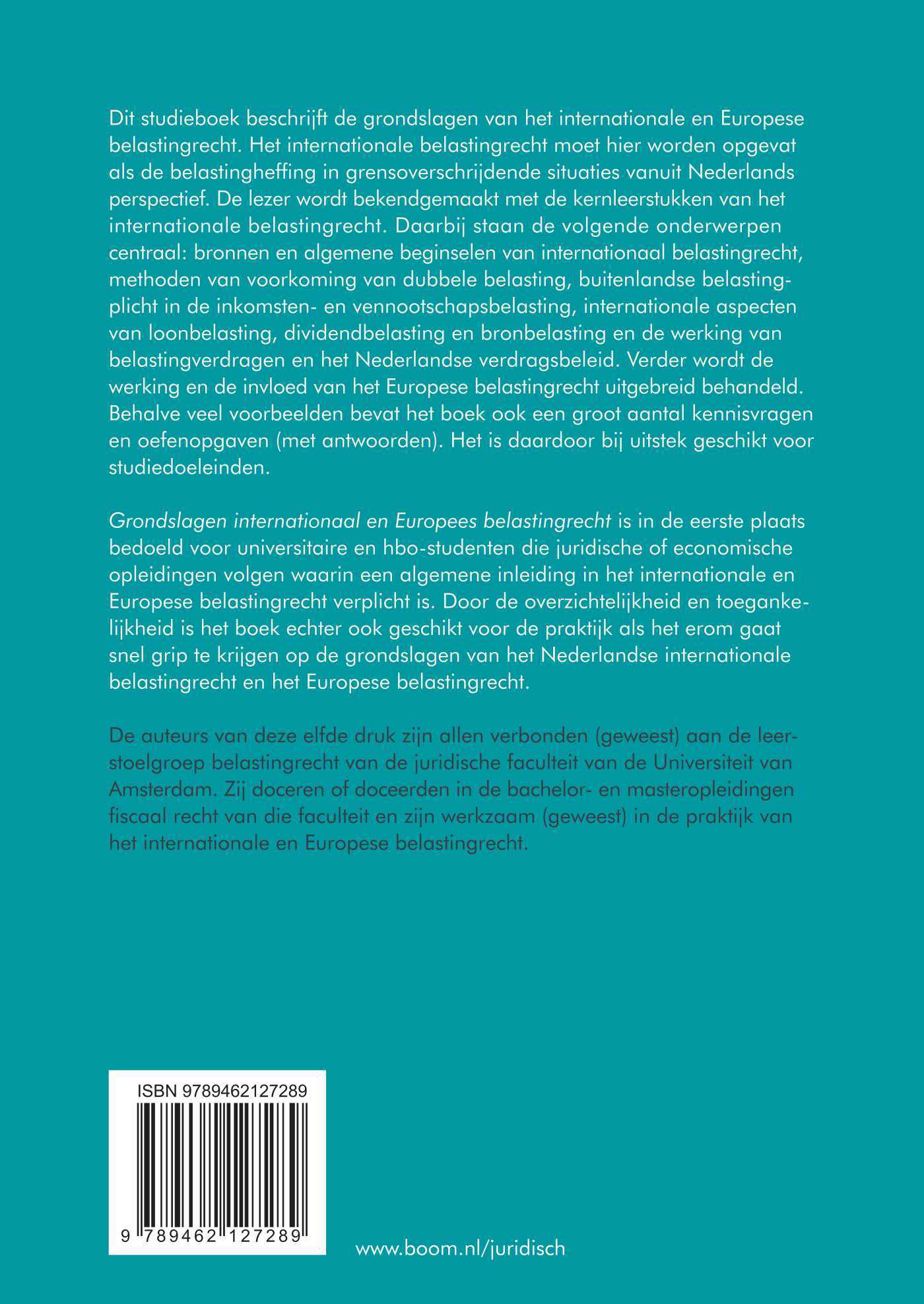 Dit studieboek beschrijft de grondslagen van het internationale en Europese belastingrecht. Het internationale belastingrecht moet hier worden opgevat als de belastingheffing in grensoverschrijdende situaties vanuit Nederlands perspectief. De lezer wordt bekendgemaakt met de kernleerstukken van het internationale belastingrecht. Daarbij staan de volgende onderwerpen centraal: bronnen en algemene beginselen van internationaal belastingrecht, methoden van voorkoming van dubbele belasting, buitenlandse belastingplicht in de inkomsten- en vennootschapsbelasting, internationale aspecten van loonbelasting, dividendbelasting en bronbelasting en de werking van belastingverdragen en het Nederlandse verdragsbeleid.