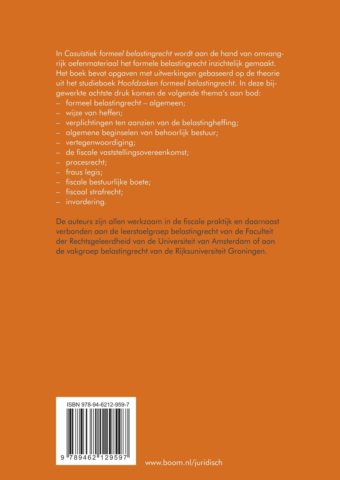 De auteurs zijn allen werkzaam in de fiscale praktijk en daarnaast verbonden aan de leerstoelgroep belastingrecht van de Faculteit der Rechtsgeleerdheid van de Universiteit van Amsterdam of aan de vakgroep belastingrecht van de Rijksuniversiteit Groningen.