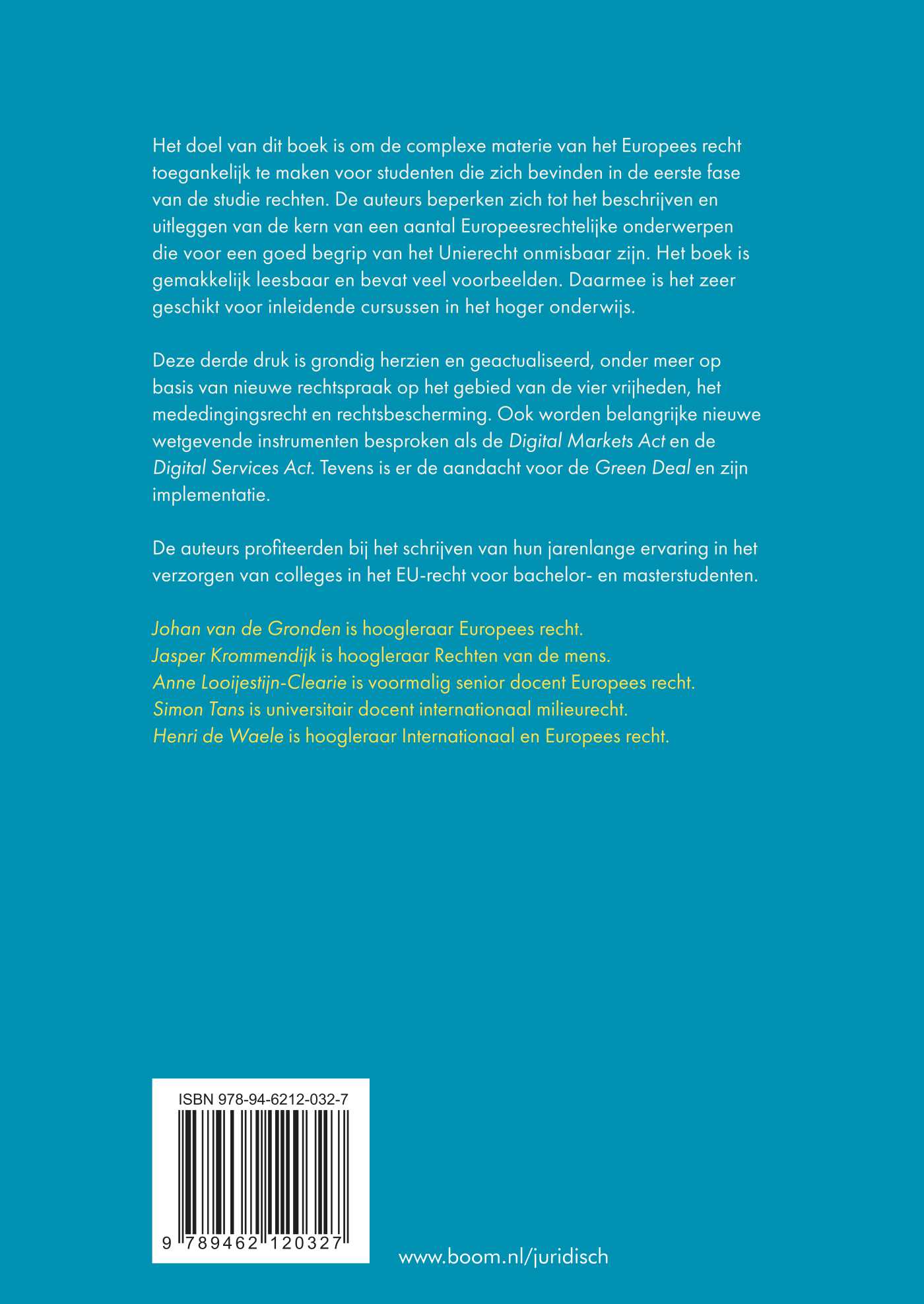 Deze derde druk is grondig herzien en geactualiseerd, onder meer op basis van nieuwe rechtspraak op het gebied van de vier vrijheden, het mededingingsrecht en rechtsbescherming. Ook worden belangrijke nieuwe wetgevende instrumenten besproken als de Digital Markets Act en de Digital Services Act. Tevens is er de aandacht voor de Green Deal en zijn implementatie.