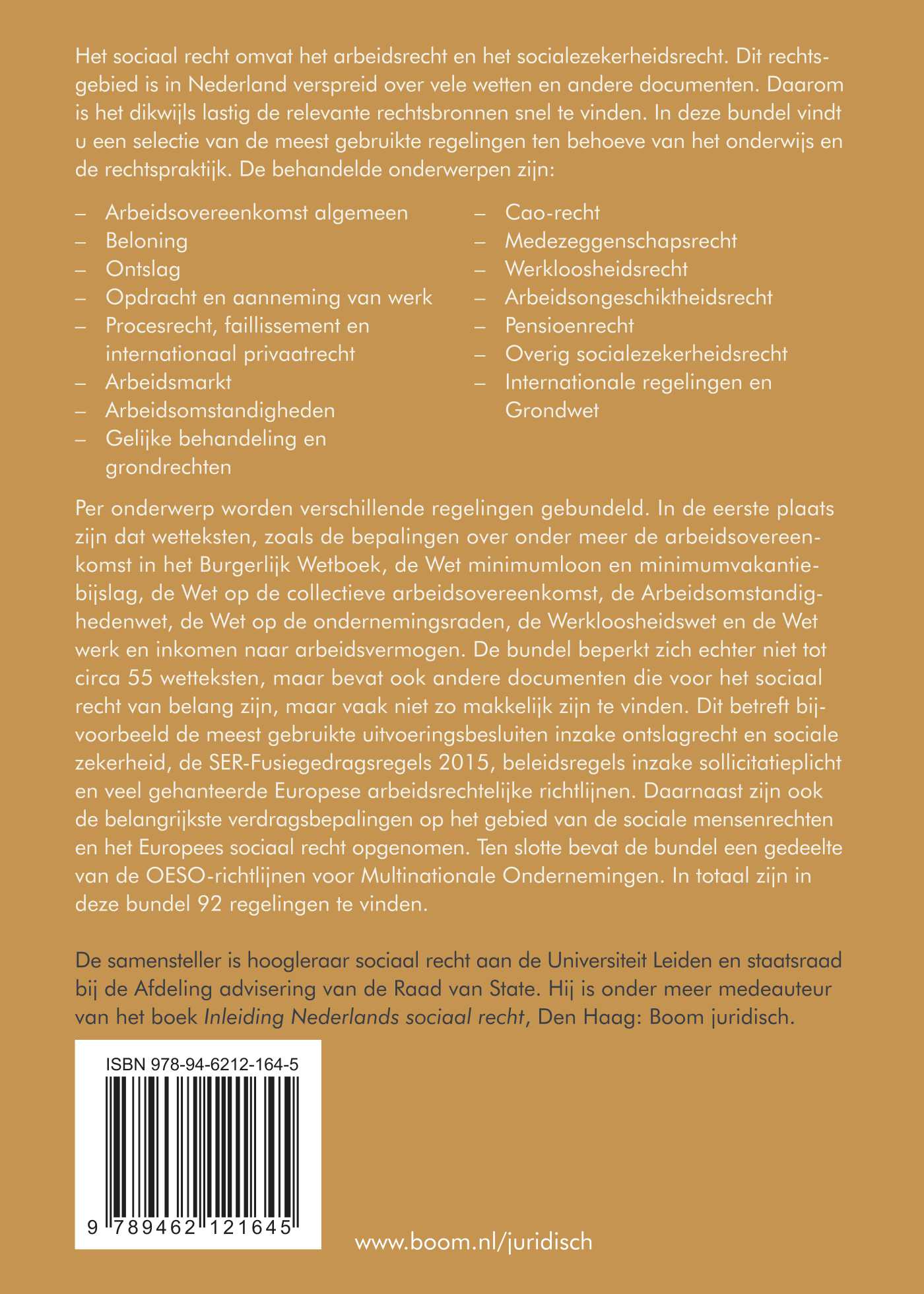 De samensteller is hoogleraar sociaal recht aan de Universiteit Leiden en staatsraad bij de Afdeling advisering van de Raad van State. Hij is onder meer medeauteur van het boek Inleiding Nederlands sociaal recht, Den Haag: Boom juridisch.