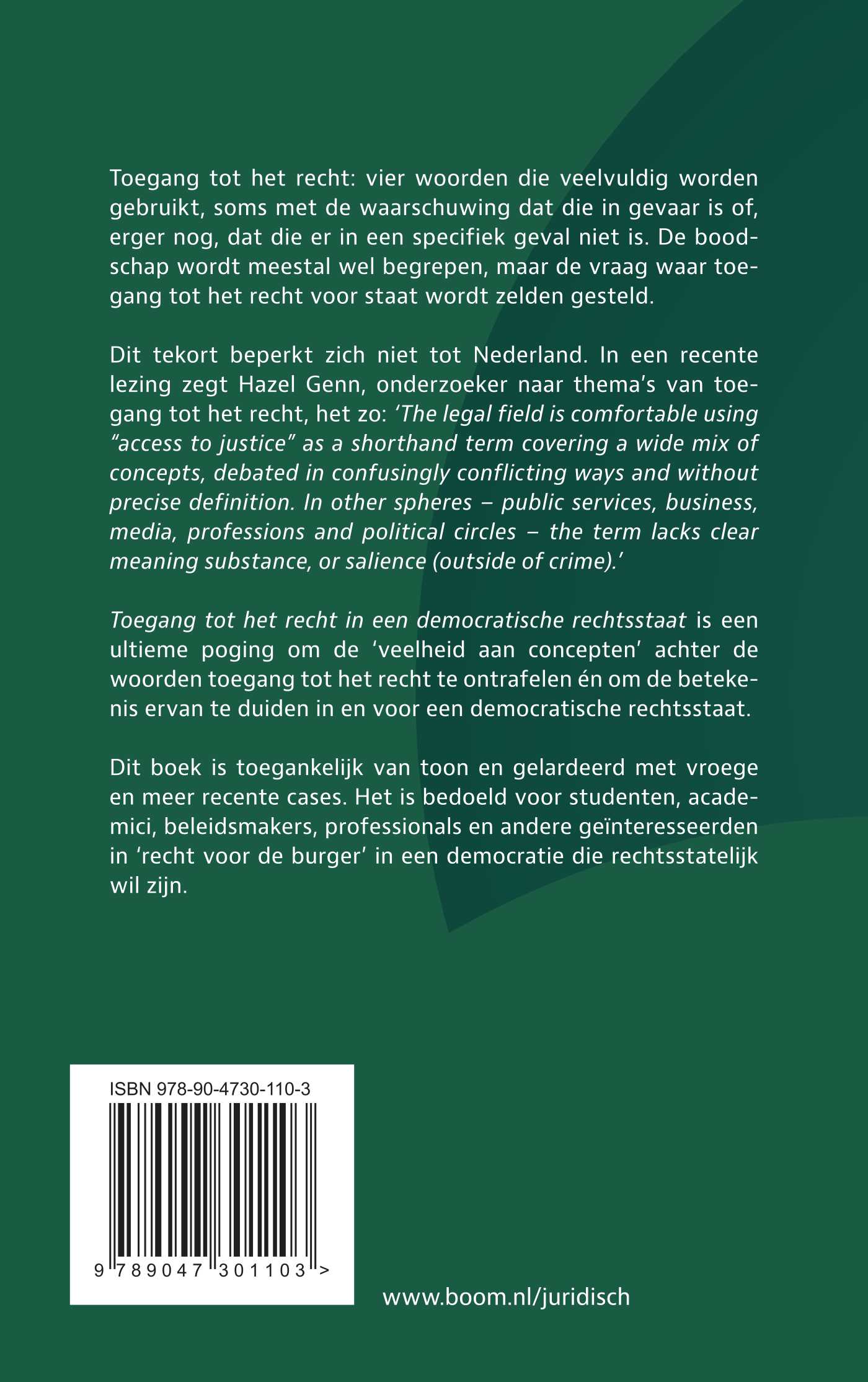 Toegang tot het recht in een democratische rechtsstaat is een ultieme poging om de ‘veelheid aan concepten’ achter de woorden toegang tot het recht te ontrafelen én om de betekenis ervan te duiden in en voor een democratische rechtsstaat.